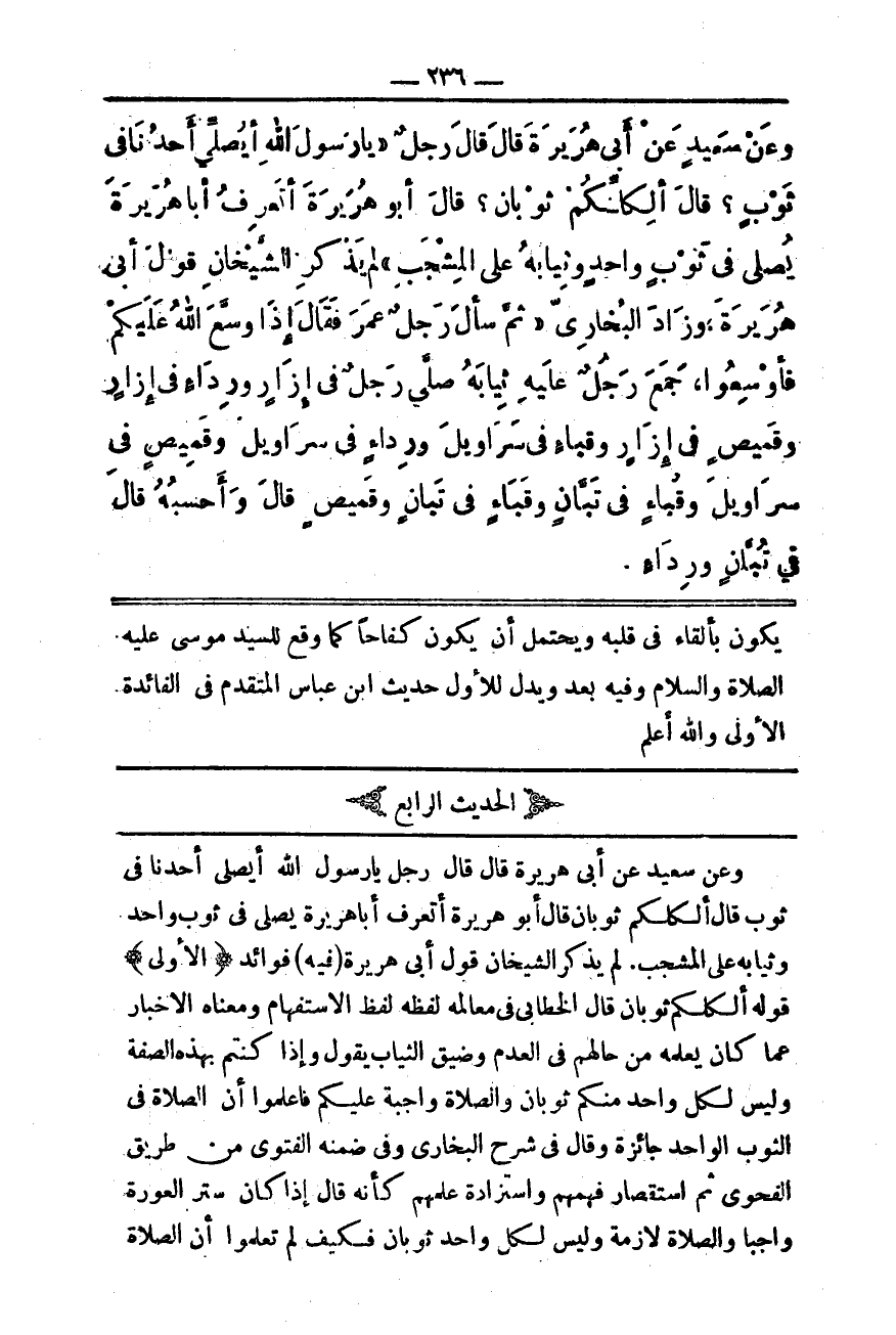 وَعَنْ سَعِيدٍ عَنْ أَبِي هُرَيْرَةَ قَالَ «قَالَ رَجُلٌ يَا رَسُولَ اللَّهِ أَيُصَلِّي أَحَدُنَا فِي ثَوْبٍ؟ قَالَ أَلِكُلِّكُمْ ثَوْبَانِ؟» قَالَ أَبُو هُرَيْرَةَ أَتَعْرِفُ أَبَا هُرَيْرَةَ يُصَلِّي فِي ثَوْبٍ وَاحِدٍ وَثِيَابُهُ عَلَى الْمِشْجَبِ لَمْ يَذْكُرْ الشَّيْخَانِ قَوْلَ أَبِي هُرَيْرَةَ وَزَادَ الْبُخَارِيُّ " ثُمَّ سَأَلَ رَجُلٌ عُمَرَ فَقَالَ إذَا وَسَّعَ اللَّهُ عَلَيْكُمْ فَأَوْسِعُوا، جَمَعَ رَجُلٌ عَلَيْهِ ثِيَابَهُ صَلَّى رَجُلٌ فِي إزَارٍ وَرِدَاءٍ فِي إزَارٍ وَقَمِيصٍ فِي إزَارٍ وَقَبَاءٍ فِي سَرَاوِيلَ وَرِدَاءٍ فِي سَرَاوِيلَ وَقَمِيصٍ فِي سَرَاوِيلَ وَقَبَاءٍ فِي تُبَّانٍ وَقَبَاءٍ فِي تُبَّانٍ وَقَمِيصٍ قَالَ وَأَحْسِبُهُ قَالَ فِي تُبَّانٍ وَرِدَاءٍ..
