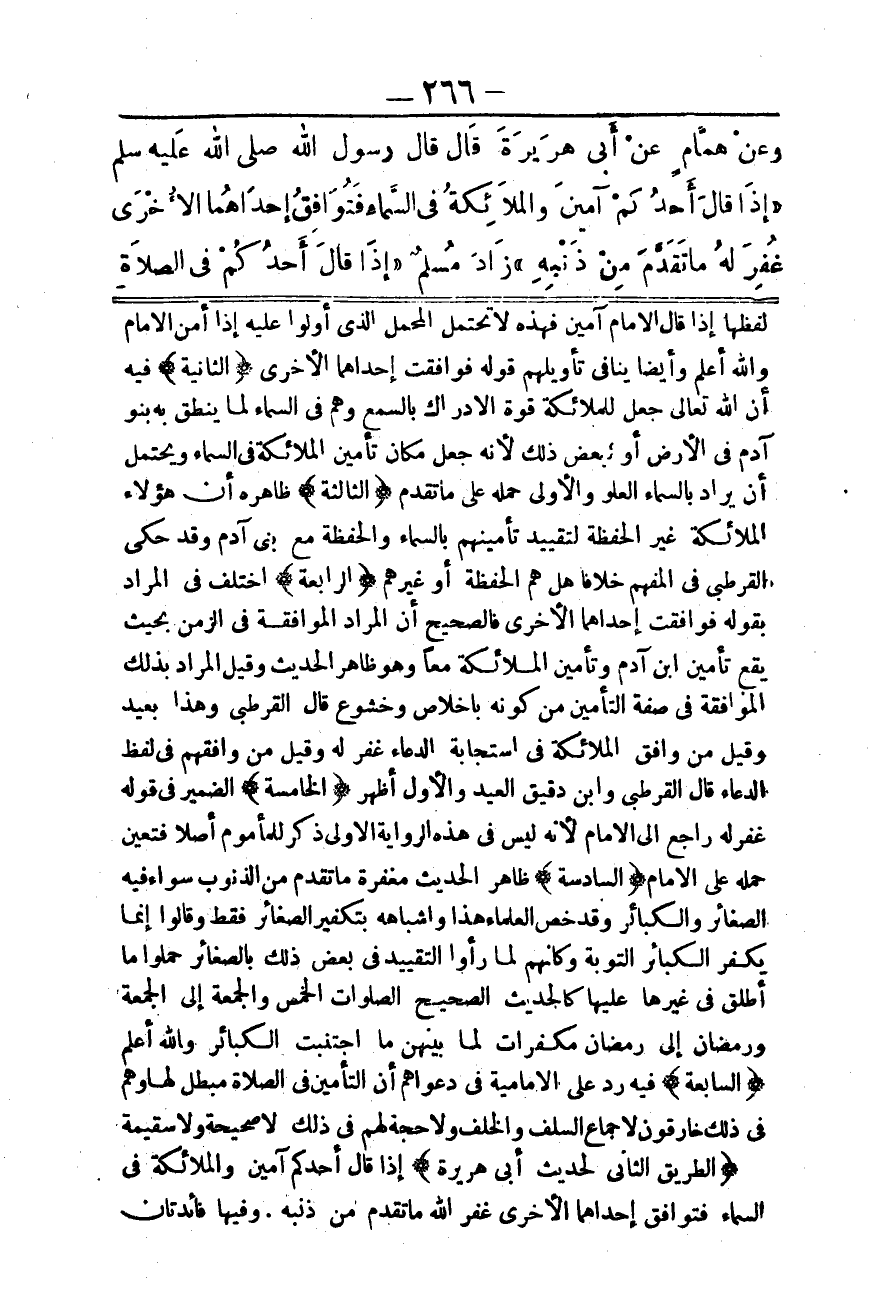 (السَّابِعَةُ) فِيهِ رَدٌّ عَلَى الْإِمَامِيَّةِ فِي دَعْوَاهُمْ أَنَّ التَّأْمِينَ فِي الصَّلَاةِ مُبْطِلٌ لَهَا وَهُمْ فِي ذَلِكَ خَارِقُونَ لِإِجْمَاعِ السَّلَفِ وَالْخَلَفِ وَلَا حُجَّةَ لَهُمْ فِي ذَلِكَ لَا صَحِيحَةً وَلَا سَقِيمَةً.