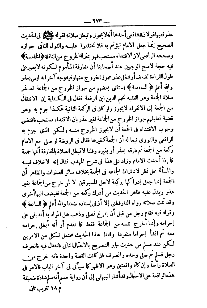 وَالظَّاهِرُ أَنَّ الْجُمُعَةَ إنَّمَا جُعِلَ إدْرَاكُهَا بِرَكْعَةٍ لِأَجْلِ الْمَسْبُوقِينَ لَا لِمَنْ خَرَجَ مِنْ الْجَمَاعَةِ بِغَيْرِ عُذْرٍ وَيَدُلُّ عَلَيْهِ ظَاهِرُ الْحَدِيثِ «مَنْ أَدْرَكَ رَكْعَةً مِنْ الْجُمُعَةِ فَلْيُضِفْ إلَيْهَا أُخْرَى وَقَدْ تَمَّتْ صَلَاتُهُ» رَوَاهُ الدَّارَقُطْنِيُّ إلَّا أَنَّ فِي إسْنَادِهِ ضَعْفًا وَاَللَّهُ أَعْلَمُ.