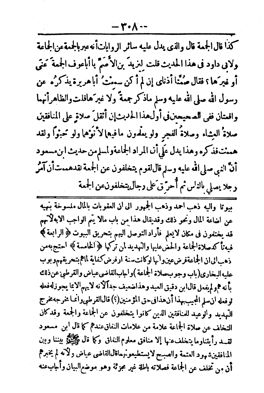 وَلِمُسْلِمٍ مِنْ حَدِيثِ ابْنِ مَسْعُودٍ أَنَّ النَّبِيَّ - صَلَّى اللَّهُ عَلَيْهِ وَسَلَّمَ - «قَالَ لِقَوْمٍ يَتَخَلَّفُونَ عَنْ الْجُمُعَةِ: لَقَدْ هَمَمْت أَنْ آمُرَ رَجُلًا يُصَلِّي بِالنَّاسِ، ثُمَّ أُحَرِّقَ عَلَى رِجَالٍ يَتَخَلَّفُونَ عَنْ الْجُمُعَةِ» ..