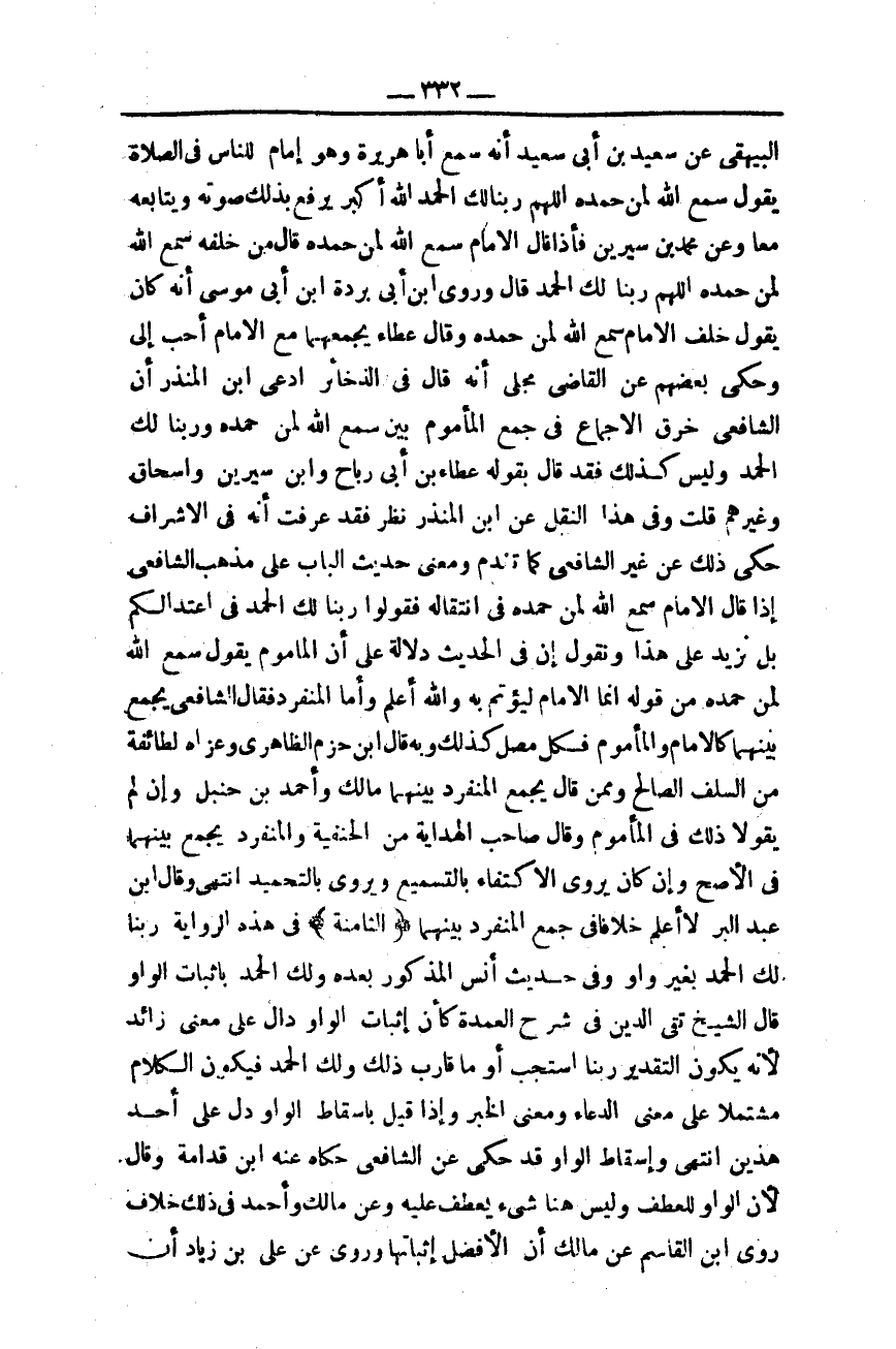 ـــــــــــــــــــــــــــــQالْبَيْهَقِيُّ عَنْ سَعِيدِ بْنِ أَبِي سَعِيدٍ أَنَّهُ سَمِعَ أَبَا هُرَيْرَةَ وَهُوَ إمَامٌ لِلنَّاسِ فِي الصَّلَاةِ يَقُولُ سَمِعَ اللَّهُ لِمَنْ حَمِدَهُ اللَّهُمَّ رَبَّنَا لَك الْحَمْدُ اللَّهُ أَكْبَرُ يَرْفَعُ بِذَلِكَ صَوْتَهُ وَيُتَابِعُهُ مَعًا وَعَنْ مُحَمَّدِ بْنِ سِيرِينَ فَإِذَا قَالَ الْإِمَامُ سَمِعَ اللَّهُ لِمَنْ حَمِدَهُ قَالَ مَنْ خَلْفَهُ سَمِعَ اللَّهُ لِمَنْ حَمِدَهُ اللَّهُمَّ رَبَّنَا لَك الْحَمْدُ قَالَ وَرَوَى ابْنُ أَبِي بُرْدَةَ بْنِ أَبِي مُوسَى أَنَّهُ كَانَ يَقُولُ خَلْفَ الْإِمَامِ سَمِعَ اللَّهُ لِمَنْ حَمِدَهُ وَقَالَ عَطَاءٌ يَجْمَعُهُمَا مَعَ الْإِمَامِ أَحَبُّ إلَيَّ وَحَكَى بَعْضُهُمْ عَنْ الْقَاضِي مُجَلِّي أَنَّهُ قَالَ فِي الذَّخَائِرِ ادَّعَى ابْنُ الْمُنْذِرِ أَنَّ الشَّافِعِيَّ خَرَقَ الْإِجْمَاعَ فِي جَمْعِ الْمَأْمُومِ بَيْنَ سَمِعَ اللَّهُ لِمَنْ حَمِدَهُ وَرَبَّنَا لَك الْحَمْدُ وَلَيْسَ كَذَلِكَ فَقَدْ قَالَ بِقَوْلِهِ عَطَاءُ بْنُ أَبِي رَبَاحٍ وَابْنُ سِيرِينَ وَإِسْحَاقُ وَغَيْرُهُمْ قُلْت