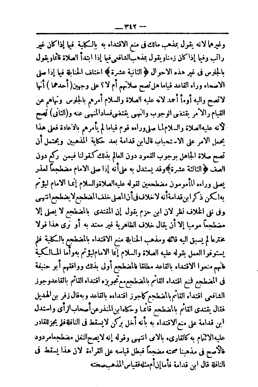 وَقَوْلُهُ إنَّهُ لَا يَصِحُّ النَّفَلُ مُضْطَجِعًا مَرْدُودٌ فَالْأَصَحُّ فِي مَذْهَبِنَا صِحَّتُهُ مَضْجَعًا فَبَطَلَ قِيَاسُهُ عَلَى الْقِرَاءَةِ لِأَنَّ هَذَا يَسْقُطُ فِي النَّافِلَةِ قَالَ ابْنُ قُدَامَةَ فَأَمَّا إنْ أَمَّ مِثْلَهُ فَقِيَاسُ الْمَذْهَبِ صِحَّتُهُ.