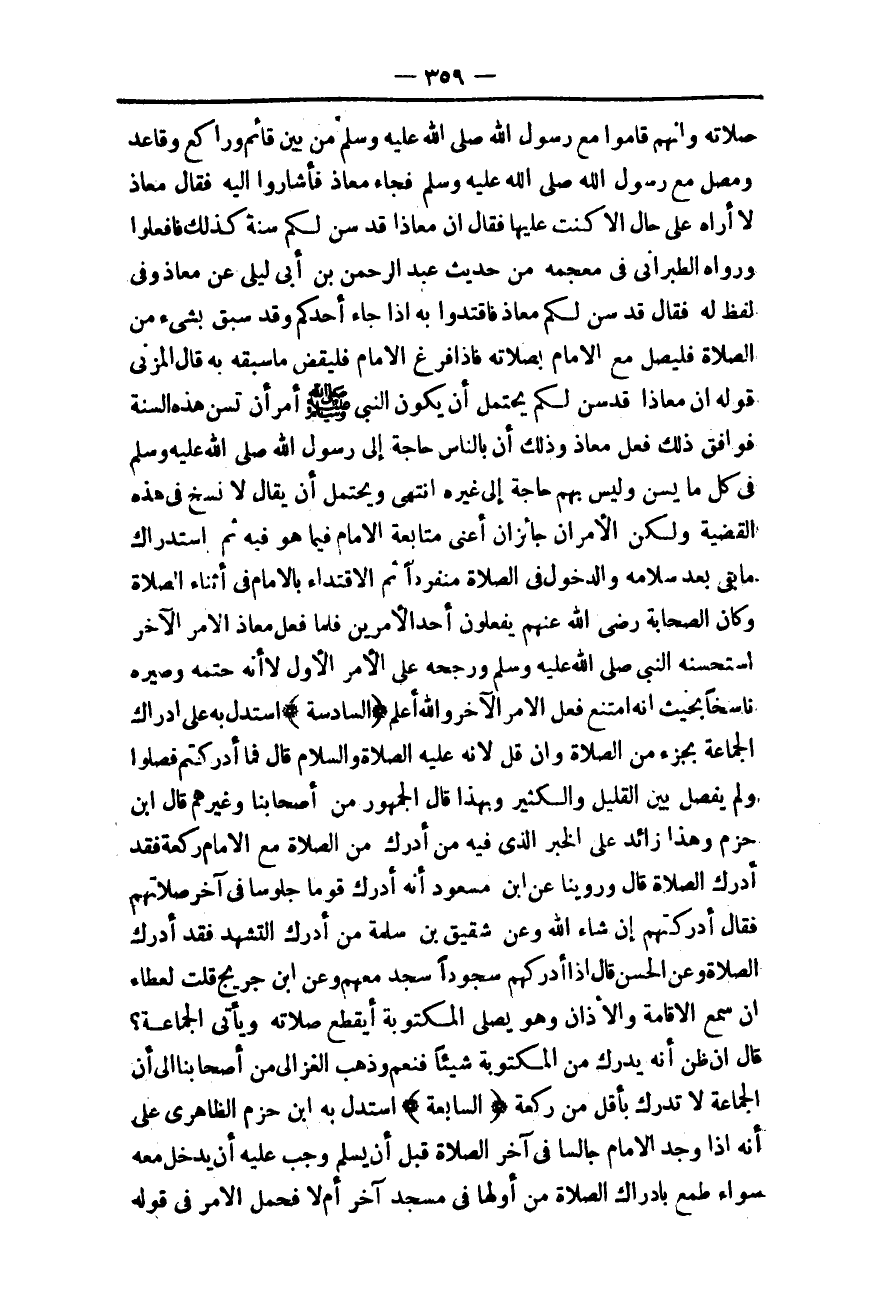 ـــــــــــــــــــــــــــــQصَلَاتِهِ وَأَنَّهُمْ قَامُوا مَعَ رَسُولِ اللَّهِ - صَلَّى اللَّهُ عَلَيْهِ وَسَلَّمَ - مِنْ بَيْنِ قَائِمٍ وَرَاكِعٍ وَقَاعِدٍ وَمُصَلٍّ مَعَ رَسُولِ اللَّهِ - صَلَّى اللَّهُ عَلَيْهِ وَسَلَّمَ - فَجَاءَ مُعَاذٌ فَأَشَارُوا إلَيْهِ فَقَالَ مُعَاذٌ لَا أَرَاهُ عَلَى حَالٍ إلَّا كُنْتُ عَلَيْهَا فَقَالَ إنَّ مُعَاذًا قَدْ سَنَّ لَكُمْ سُنَّةً كَذَلِكَ فَافْعَلُوا» وَرَوَاهُ الطَّبَرَانِيُّ فِي مُعْجَمِهِ مِنْ حَدِيثِ عَبْدِ الرَّحْمَنِ بْنِ أَبِي لَيْلَى عَنْ مُعَاذٍ وَفِي لَفْظٍ لَهُ «فَقَالَ قَدْ سَنَّ لَكُمْ مُعَاذٌ فَاقْتَدُوا بِهِ إذَا جَاءَ أَحَدُكُمْ وَقَدْ سُبِقَ بِشَيْءٍ مِنْ الصَّلَاةِ فَلْيُصَلِّ مَعَ الْإِمَامِ بِصَلَاتِهِ فَإِذَا فَرَغَ الْإِمَامُ فَلْيَقْضِ مَا سَبَقَهُ بِهِ» .