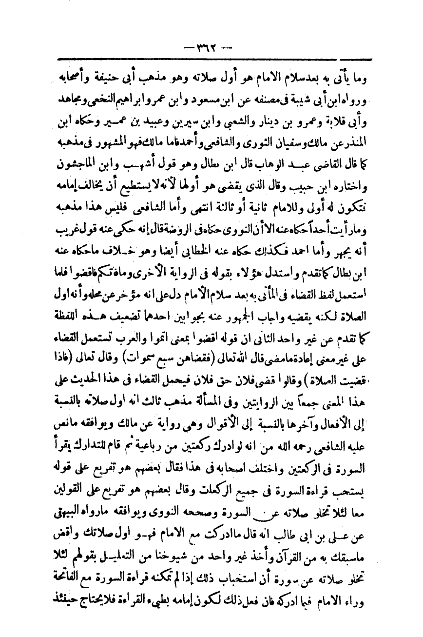 ـــــــــــــــــــــــــــــQوَمَا يَأْتِي بِهِ بَعْدَ سَلَامِ الْإِمَامِ هُوَ أَوَّلُ صَلَاتِهِ وَهُوَ مَذْهَبُ أَبِي حَنِيفَةَ وَأَصْحَابِهِ وَرَوَاهُ ابْنُ أَبِي شَيْبَةَ فِي مُصَنَّفِهِ عَنْ ابْنِ مَسْعُودٍ وَابْنِ عُمَرَ وَإِبْرَاهِيم النَّخَعِيّ وَمُجَاهِدٍ وَأَبِي قِلَابَةَ وَعَمْرِو بْنِ دِينَارٍ وَالشَّعْبِيِّ وَابْنُ سِيرِينَ وَعُبَيْدُ بْنُ عُمَيْرٍ وَحَكَاهُ ابْنُ الْمُنْذِرِ عَنْ مَالِكٍ وَسُفْيَانَ الثَّوْرِيِّ وَالشَّافِعِيِّ وَأَحْمَدُ.