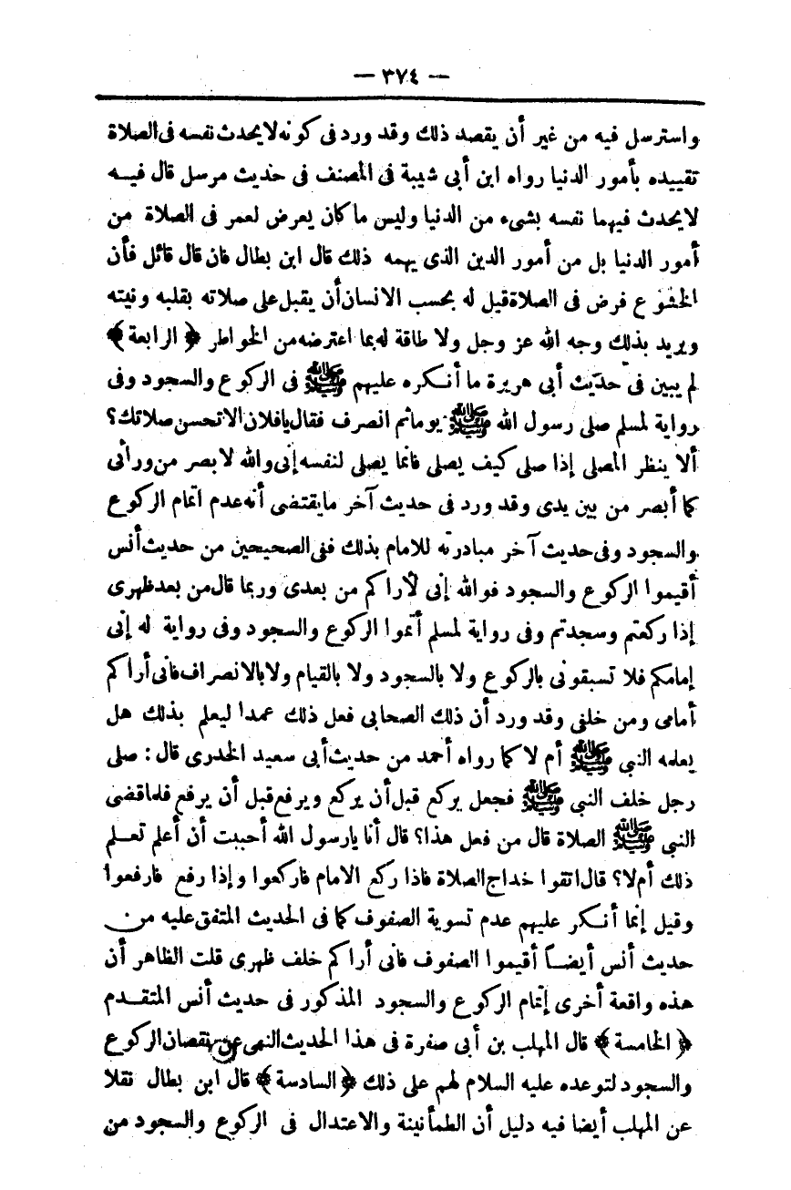 ـــــــــــــــــــــــــــــQوَاسْتَرْسَلَ فِيهِ مِنْ غَيْرِ أَنْ يَقْصِدَ ذَلِكَ وَقَدْ وَرَدَ فِي كَوْنِهِ لَا يُحَدِّثُ نَفْسَهُ فِي الصَّلَاةِ تَقْيِيدُهُ بِأُمُورِ الدُّنْيَا رَوَاهُ ابْنُ أَبِي شَيْبَةَ فِي الْمُصَنَّفِ فِي حَدِيثٍ مُرْسَلٍ قَالَ فِيهِ «لَا يُحَدِّثُ فِيهِمَا نَفْسَهُ بِشَيْءٍ مِنْ الدُّنْيَا» وَلَيْسَ مَا كَانَ يَعْرِضُ لِعُمَرَ فِي الصَّلَاةِ مِنْ أُمُورِ الدُّنْيَا بَلْ مِنْ أُمُورِ الدِّينِ الَّذِي يُهِمُّهُ ذَلِكَ قَالَ ابْنُ بَطَّالٍ فَإِنْ قَالَ قَائِلٌ فَإِنَّ الْخُشُوعَ فَرْضٌ فِي الصَّلَاةِ قِيلَ لَهُ بِحَسْبِ الْإِنْسَانِ أَنْ يُقْبِلَ عَلَى صَلَاتِهِ بِقَلْبِهِ وَنِيَّتِهِ وَيُرِيدُ بِذَلِكَ وَجْهَ اللَّهِ عَزَّ وَجَلَّ وَلَا طَاقَةَ لَهُ بِمَا اعْتَرَضَهُ مِنْ الْخَوَاطِرِ.