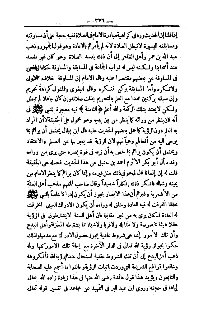 {الثَّامِنَةُ} فِيهِ مُعْجِزَةٌ لِلنَّبِيِّ - صَلَّى اللَّهُ عَلَيْهِ وَسَلَّمَ - فِي أَنَّهُ كَانَ يَنْظُرُ مِنْ وَرَائِهِ كَمَا يَنْظُرُ مِنْ بَيْنِ يَدَيْهِ وَهُوَ مَحْمُولٌ عَلَى الْحَقِيقَةِ لَا أَنَّ الْمُرَادَ بِهِ الْعِلْمُ دُونَ الرُّؤْيَةِ كَمَا حَمَلَ بَعْضُهُمْ الْحَدِيثَ عَلَيْهِ قَالَ ابْنُ بَطَّالٍ يَحْتَمِلُ أَنْ يَرَاهُمْ بِمَا يُوحَى إلَيْهِ مِنْ أَفْعَالِهِمْ وَهَيْئَاتِهِمْ لِأَنَّ الرُّؤْيَةَ قَدْ يُعَبَّرُ بِهَا عَنْ الْعِلْمِ وَالِاعْتِقَادِ وَيَحْتَمِلُ أَنْ يَكُونَ يَرَاهُمْ بِمَا خُصَّ بِهِ أَنْ زِيدَ فِي قُوَّةِ بَصَرِهِ حَتَّى يَرَى مَنْ وَرَاءَهُ وَقَدْ سَأَلَ أَبُو بَكْرٍ الْأَثْرَمُ أَحْمَدُ بْنُ حَنْبَلٍ عَنْ هَذَا الْحَدِيثِ فَحَمَلَهُ عَلَى الْحَقِيقَةِ قُلْتُ لَهُ إنَّ إنْسَانًا قَالَ لِي هُوَ فِي ذَلِكَ مِثْلُ غَيْرِهِ، وَإِنَّمَا كَانَ يَرَاهُمْ كَمَا يَنْظُرُ الْإِمَامُ مِنْ يَمِينِهِ وَشِمَالِهِ فَأَنْكَرَ ذَلِكَ إنْكَارًا شَدِيدًا وَقَالَ صَاحِبُ الْمُفْهِمِ مَذْهَبُ أَهْلِ السُّنَّةِ مِنْ الْأَشْعَرِيَّةِ وَغَيْرِهِمْ أَنَّ هَذَا الْإِبْصَارَ يَجُوزُ أَنْ يَكُونَ إدْرَاكًا خَاصًّا بِالنَّبِيِّ - صَلَّى اللَّهُ عَلَيْهِ وَسَلَّمَ - مُحَقَّقًا انْخَرَقَتْ لَهُ فِيهِ الْعَادَةُ وَخُلِقَ لَهُ وَرَاءَهُ أَنْ يَكُونَ الْإِدْرَاكُ الْعَيْنِيُّ انْخَرَقَتْ لَهُ الْعَادَةُ فَكَانَ يَرَى بِهِ مِنْ غَيْرِ مُقَابَلَةٍ فَإِنَّ أَهْلَ السُّنَّةِ لَا يَشْتَرِطُونَ فِي الرُّؤْيَةِ عَقْلًا هَيْئَةً مَخْصُوصَةً وَلَا مُقَابَلَةً وَلَا قُرْبًا وَلَا شَيْئًا مِمَّا يَشْتَرِطُهُ الْمُعْتَزِلَةُ وَأَهْلُ الْبِدَعِ وَأَنَّ تِلْكَ الْأُمُورَ إنَّمَا هِيَ شُرُوطٌ عَادِيَّةٌ يَجُوزُ حُصُولُ الْإِدْرَاكِ مَعَ عَدَمِهَا وَلِذَلِكَ حَكَمُوا بِجَوَازِ رُؤْيَةِ اللَّهِ تَعَالَى فِي الدَّارِ الْآخِرَةِ مَعَ إحَالَةِ تِلْكَ الْأُمُورِ كُلِّهَا وَلَمَّا ذَهَبَ أَهْلُ الْبِدَعِ إلَى أَنَّ تِلْكَ الشُّرُوطَ عَقْلِيَّةٌ اسْتَحَالَ عِنْدَهُمْ رُؤْيَةُ اللَّهِ فَأَنْكَرُوهَا وَخَالَفُوا قَوَاطِعَ الشَّرِيعَةِ الَّتِي وَرَدَتْ بِإِثْبَاتِ الرُّؤْيَةِ وَخَالَفُوا مَا أَجْمَعَ عَلَيْهِ الصَّحَابَةُ وَالتَّابِعُونَ وَيُؤَيِّدُ هَذَا قَوْلُ عَائِشَةَ - رَضِيَ اللَّهُ عَنْهَا - فِي هَذَا زِيَادَةٌ زَادَهُ اللَّهُ تَعَالَى إيَّاهَا فِي حُجَّتِهِ وَرَوَى ابْنُ عَبْدِ الْبَرِّ فِي التَّمْهِيدِ عَنْ مُجَاهِدٍ فِي تَفْسِيرِ قَوْله تَعَالَى