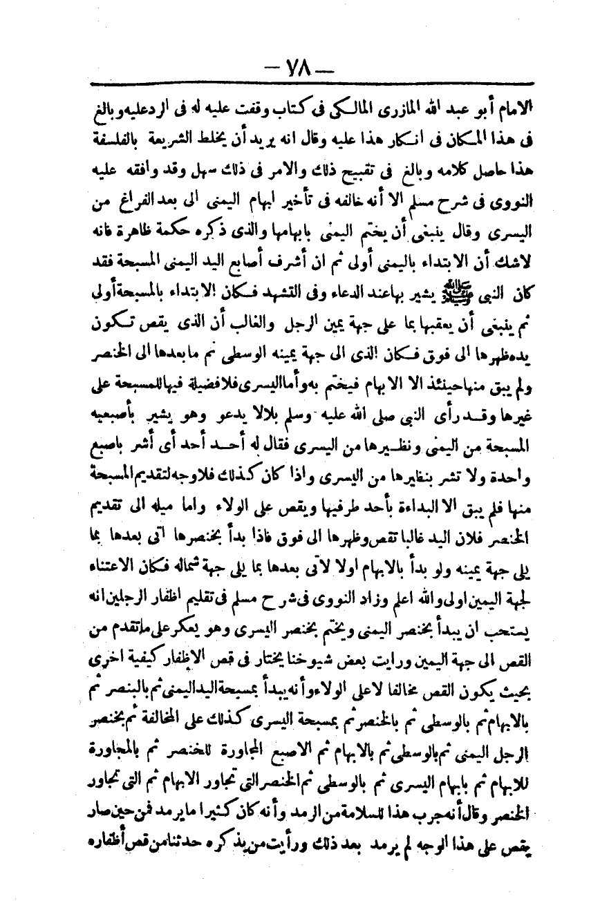وَقَدْ وَافَقَهُ عَلَيْهِ النَّوَوِيُّ فِي شَرْحِ مُسْلِمٍ إلَّا أَنَّهُ خَالَفَهُ فِي تَأْخِيرِ إبْهَامِ الْيُمْنَى إلَى بَعْدِ الْفَرَاغِ مِنْ الْيُسْرَى وَقَالَ يَنْبَغِي أَنْ يَخْتِمَ الْيُمْنَى بِإِبْهَامِهَا وَاَلَّذِي ذَكَرَهُ حِكْمَةٌ ظَاهِرَةٌ فَإِنَّهُ لَا شَكَّ أَنَّ الِابْتِدَاءَ بِالْيُمْنَى أَوْلَى ثُمَّ إنَّ أَشْرَفَ أَصَابِعِ الْيَدِ الْيُمْنَى الْمُسَبِّحَةُ فَقَدْ كَانَ النَّبِيُّ - صَلَّى اللَّهُ عَلَيْهِ وَسَلَّمَ - يُشِيرُ بِهَا عِنْدَ الدُّعَاءِ وَفِي التَّشَهُّدِ فَكَانَ الِابْتِدَاءُ بِالْمُسَبِّحَةِ أَوْلَى ثُمَّ يَنْبَغِي أَنْ يَعْقُبَهَا بِمَا عَلَى جِهَةِ يَمِينِ الرَّجُلِ.