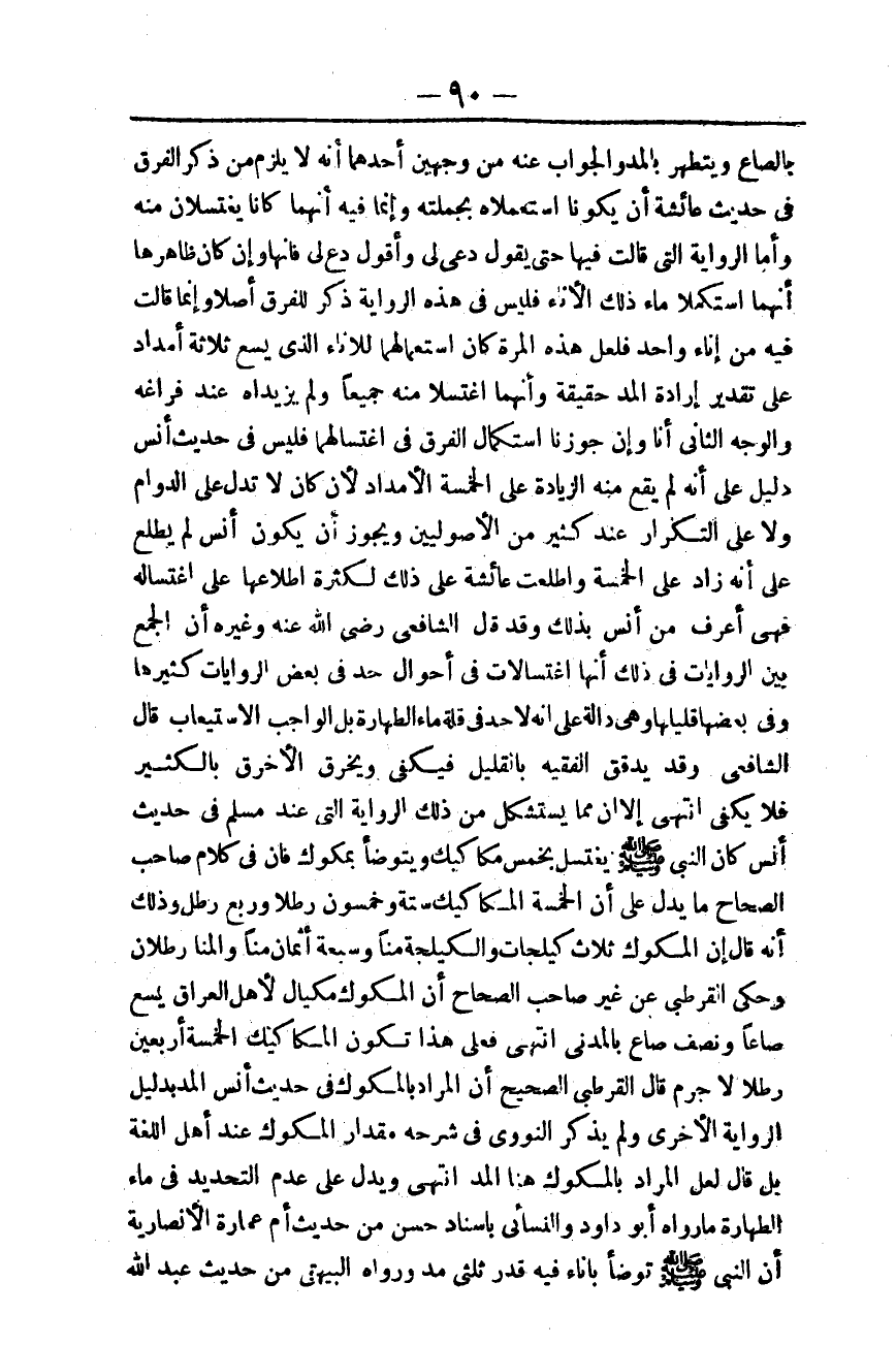 فَعَلَى هَذَا تَكُونُ الْمَكَاكِيكُ الْخَمْسَةُ أَرْبَعِينَ رِطْلًا لَا جَرَمَ قَالَ الْقُرْطُبِيُّ الصَّحِيحُ أَنَّ الْمُرَادَ بِالْمَكُّوكِ فِي حَدِيثِ أَنَسٍ الْمُدُّ بِدَلِيلِ الرِّوَايَةِ الْأُخْرَى وَلَمْ يَذْكُرْ النَّوَوِيُّ فِي شَرْحِهِ مِقْدَارَ الْمَكُّوكِ عِنْدَ أَهْلِ اللُّغَةِ بَلْ قَالَ لَعَلَّ الْمُرَادَ بِالْمَكُّوكِ هُنَا الْمُدُّ انْتَهَى وَيَدُلُّ عَلَى عَدَمِ التَّحْدِيدِ فِي مَاءِ الطَّهَارَةِ مَا رَوَاهُ أَبُو دَاوُد، وَالنَّسَائِيُّ بِإِسْنَادٍ حَسَنٍ مِنْ حَدِيثِ أُمِّ عُمَارَةَ الْأَنْصَارِيَّةِ «أَنَّ النَّبِيَّ - صَلَّى اللَّهُ عَلَيْهِ وَسَلَّمَ - تَوَضَّأَ بِإِنَاءٍ فِيهِ قَدْرُ ثُلُثَيْ مُدٍّ» وَرَوَاهُ الْبَيْهَقِيُّ مِنْ حَدِيثِ عَبْدِ اللَّهِ بْنِ زَيْدٍ