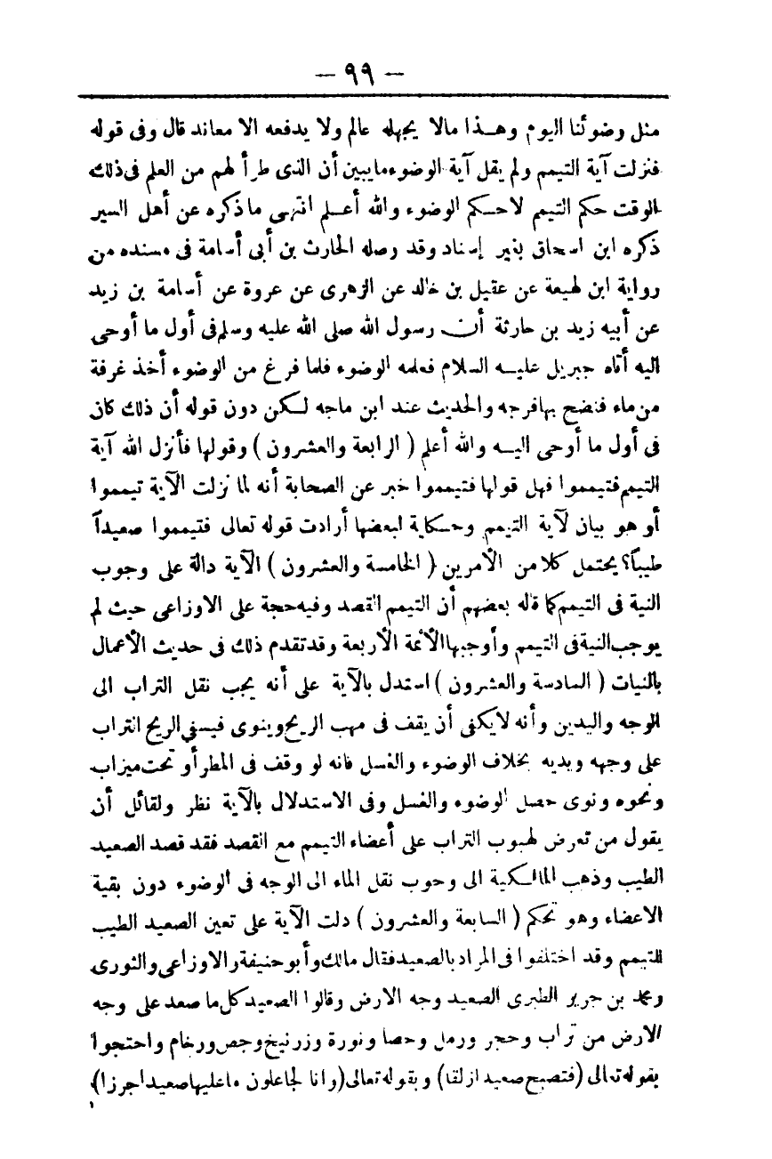 ـــــــــــــــــــــــــــــQمِثْلَ وُضُوئِنَا الْيَوْمَ، وَهَذَا مَا لَا يَجْهَلُهُ عَالِمٌ وَلَا يَدْفَعُهُ إلَّا مُعَانِدٌ قَالَ وَفِي قَوْلِهِ فَنَزَلَتْ آيَةُ التَّيَمُّمِ وَلَمْ يَقُلْ آيَةَ الْوُضُوءِ مَا يُبَيِّنُ أَنَّ الَّذِي طَرَأَ لَهُمْ مِنْ الْعِلْمِ فِي ذَلِكَ الْوَقْتِ حُكْمُ التَّيَمُّمِ لَا حُكْمُ الْوُضُوءِ وَاَللَّهُ أَعْلَمُ انْتَهَى مَا ذَكَرَهُ عَنْ أَهْلِ السِّيَرِ ذَكَرَهُ ابْنُ إِسْحَاقَ بِغَيْرِ إسْنَادٍ.