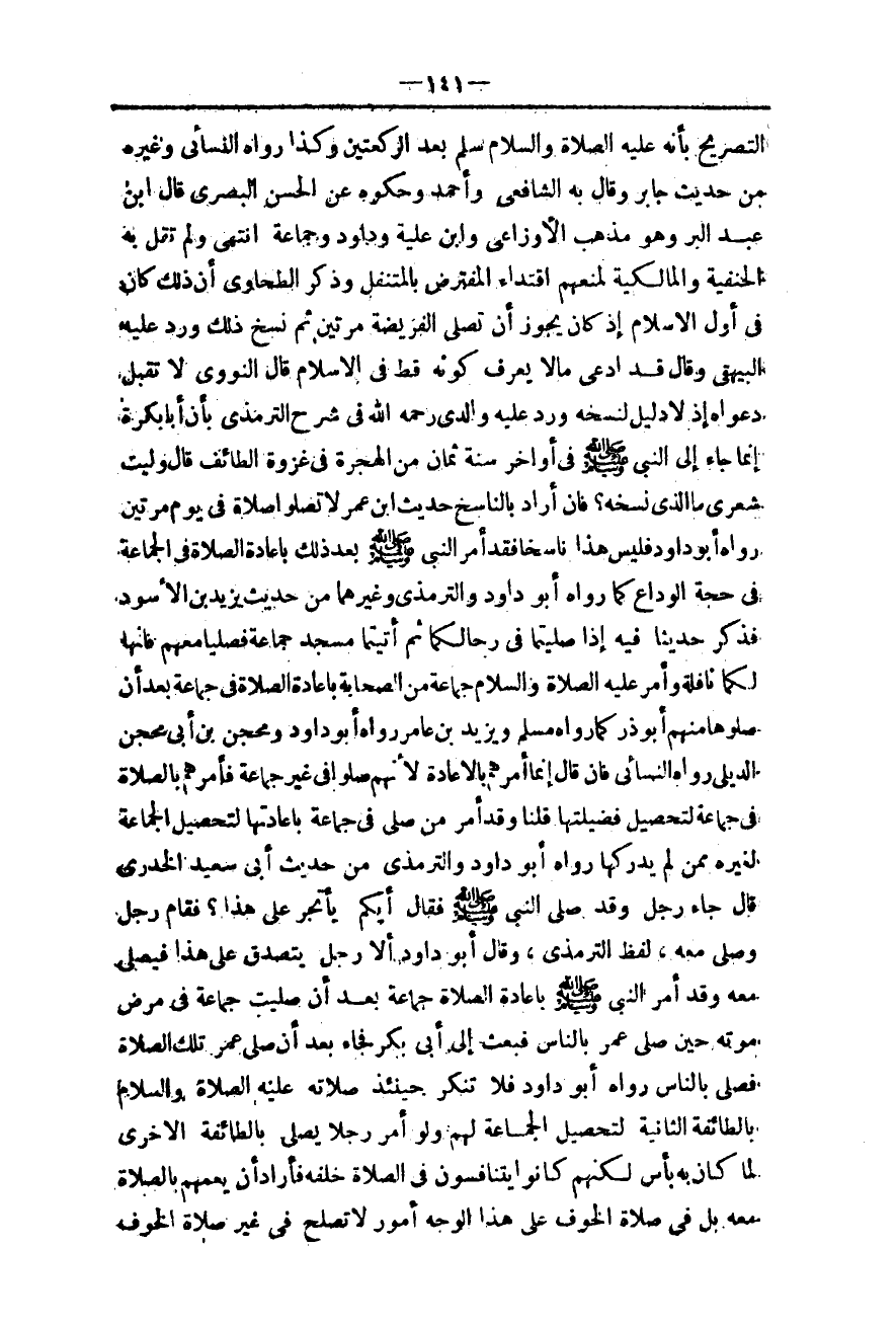 ـــــــــــــــــــــــــــــQالتَّصْرِيحُ «بِأَنَّهُ - عَلَيْهِ الصَّلَاةُ وَالسَّلَامُ - سَلَّمَ بَعْدَ الرَّكْعَتَيْنِ» وَكَذَا رَوَاهُ النَّسَائِيّ وَغَيْرُهُ مِنْ حَدِيثِ جَابِرٍ وَقَالَ بِهِ الشَّافِعِيُّ وَأَحْمَدُ وَحَكَوْهُ عَنْ الْحَسَنِ الْبَصْرِيِّ قَالَ ابْنُ عَبْدِ الْبَرِّ وَهُوَ مَذْهَبُ الْأَوْزَاعِيِّ وَابْنِ عُلَيَّةَ وَدَاوُد وَجَمَاعَةٍ انْتَهَى وَلَمْ تَقُلْ بِهِ الْحَنَفِيَّةُ وَالْمَالِكِيَّةُ لِمَنْعِهِمْ اقْتِدَاءَ الْمُفْتَرِضِ بِالْمُتَنَفِّلِ وَذَكَرَ الطَّحَاوِيُّ أَنَّ ذَلِكَ كَانَ فِي أَوَّلِ الْإِسْلَامِ إذْ كَانَ يَجُوزُ أَنْ تُصَلَّى الْفَرِيضَةُ مَرَّتَيْنِ ثُمَّ نُسِخَ ذَلِكَ وَرَدَّ عَلَيْهِ الْبَيْهَقِيُّ وَقَالَ قَدْ ادَّعَى مَا لَا يُعْرَفُ كَوْنُهُ قَطُّ فِي الْإِسْلَامِ قَالَ النَّوَوِيُّ لَا تُقْبَلُ دَعْوَاهُ إذْ لَا دَلِيلَ لِنَسْخِهِ وَرَدَّ عَلَيْهِ وَالِدِي - رَحِمَهُ اللَّهُ - فِي شَرْحِ التِّرْمِذِيِّ بِأَنَّ أَبَا بَكْرَةَ إنَّمَا جَاءَ إلَى النَّبِيِّ - صَلَّى اللَّهُ عَلَيْهِ وَسَلَّمَ - فِي أَوَاخِرِ سَنَةِ ثَمَانٍ مِنْ الْهِجْرَةِ فِي غَزْوَةِ الطَّائِفِ قَالَ وَلَيْتَ شِعْرِي مَا الَّذِي نَسَخَهُ؟ فَإِنْ أَرَادَ بِالنَّاسِخِ حَدِيثَ ابْنِ عُمَرَ «لَا تُصَلُّوا صَلَاةً فِي يَوْمٍ مَرَّتَيْنِ» رَوَاهُ أَبُو دَاوُد فَلَيْسَ هَذَا نَاسِخًا فَقَدْ أَمَرَ النَّبِيُّ - صَلَّى اللَّهُ عَلَيْهِ وَسَلَّمَ - بَعْدَ ذَلِكَ بِإِعَادَةِ الصَّلَاةِ فِي الْجَمَاعَةِ فِي حَجَّةِ الْوَدَاعِ كَمَا رَوَاهُ أَبُو دَاوُد وَالتِّرْمِذِيُّ وَغَيْرُهُمَا مِنْ حَدِيثِ يَزِيدَ بْنِ الْأَسْوَدِ فَذَكَرَ حَدِيثًا فِيهِ «إذَا صَلَّيْتُمَا فِي رِحَالِكُمَا ثُمَّ أَتَيْتُمَا مَسْجِدَ جَمَاعَةٍ فَصَلِّيَا مَعَهُمْ فَإِنَّهَا لَكُمَا نَافِلَةٌ وَأَمَرَ - عَلَيْهِ الصَّلَاةُ وَالسَّلَامُ - جَمَاعَةً مِنْ الصَّحَابَةِ بِإِعَادَةِ الصَّلَاةِ فِي جَمَاعَةٍ بَعْدَ أَنْ صَلَّوْهَا مِنْهُمْ أَبُو ذَرٍّ» كَمَا رَوَاهُ مُسْلِمٌ وَيَزِيدُ بْنُ عَامِرٍ رَوَاهُ أَبُو دَاوُد وَمِحْجَنُ بْنُ أَبِي مِحْجَنٍ الدِّيلِيُّ رَوَاهُ النَّسَائِيّ فَإِنْ قَالَ إنَّمَا أَمَرَهُمْ بِالْإِعَادَةِ لِأَنَّهُمْ صَلَّوْا فِي غَيْرِ جَمَاعَةٍ فَأَمَرَهُمْ بِالصَّلَاةِ فِي جَمَاعَةٍ لِتَحْصِيلِ فَضِيلَتِهَا قُلْنَا وَقَدْ أَمَرَ مَنْ صَلَّى فِي جَمَاعَةٍ بِإِعَادَتِهَا لِتَحْصِيلِ الْجَمَاعَةِ لِغَيْرِهِ مِمَّنْ لَمْ يُدْرِكْهَا.
