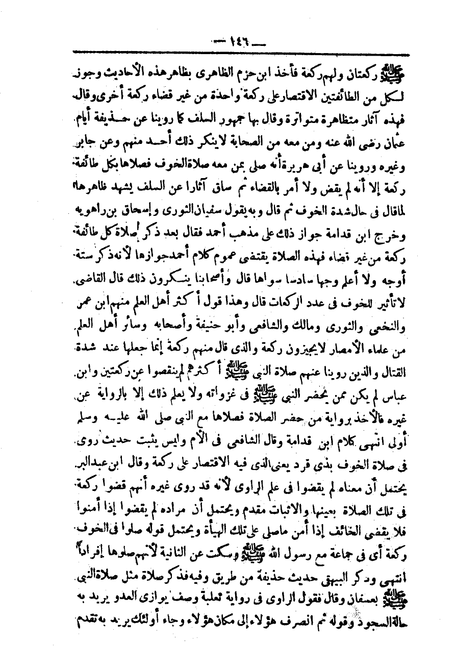 ـــــــــــــــــــــــــــــQ- صَلَّى اللَّهُ عَلَيْهِ وَسَلَّمَ - رَكْعَتَانِ وَلَهُمْ رَكْعَةٌ» فَأَخَذَ ابْنُ حَزْمٍ الظَّاهِرِيُّ بِظَاهِرِ هَذِهِ الْأَحَادِيثِ وَجَوَّزَ لِكُلٍّ مِنْ الطَّائِفَتَيْنِ الِاقْتِصَارَ عَلَى رَكْعَةٍ وَاحِدَةٍ مِنْ غَيْرِ قَضَاءِ رَكْعَةٍ أُخْرَى وَقَالَ فَهَذِهِ آثَارٌ مُتَظَاهِرَةٌ مُتَوَاتِرَةٌ وَقَالَ بِهَا جُمْهُورُ السَّلَفِ كَمَا رَوَيْنَا عَنْ حُذَيْفَةَ أَيَّامَ عُثْمَانَ - رَضِيَ اللَّهُ عَنْهُ - وَمَنْ مَعَهُ مِنْ الصَّحَابَةِ لَا يُنْكِرُ ذَلِكَ أَحَدٌ مِنْهُمْ وَعَنْ جَابِرٍ وَغَيْرِهِ رَوَيْنَا عَنْ أَبِي هُرَيْرَةَ أَنَّهُ صَلَّى بِمَنْ مَعَهُ صَلَاةَ الْخَوْفِ فَصَلَّاهَا بِكُلِّ طَائِفَةٍ رَكْعَةً إلَّا أَنَّهُ لَمْ يَقْضِ وَلَا أَمَرَ بِالْقَضَاءِ ثُمَّ سَاقَ آثَارًا عَنْ السَّلَفِ يَشْهَدُ ظَاهِرُهَا لِمَا قَالَ لِشِدَّةِ الْخَوْفِ ثُمَّ قَالَ وَبِهِ يَقُولُ سُفْيَانُ الثَّوْرِيُّ وَإِسْحَاقُ بْنُ رَاهْوَيْهِ وَخَرَّجَ ابْنُ قُدَامَةَ جَوَازَ ذَلِكَ عَلَى مَذْهَبِ أَحْمَدَ فَقَالَ بَعْدَ ذِكْرِ صَلَاةِ كُلِّ طَائِفَةٍ رَكْعَةً مِنْ غَيْرِ قَضَاءٍ فَهَذِهِ الصَّلَاةُ يَقْتَضِي عُمُومُ كَلَامِ أَحْمَدَ جَوَازَهَا لِأَنَّهُ ذَكَرَ سِتَّةَ أَوْجُهٍ وَلَا أَعْلَمُ وَجْهًا سَادِسًا سِوَاهَا قَالَ وَأَصْحَابُنَا يُنْكِرُونَ ذَلِكَ قَالَ الْقَاضِي لَا تَأْثِيرَ لِلْخَوْفِ فِي عَدَدِ الرَّكَعَاتِ قَالَ وَهَذَا قَوْلُ أَكْثَرِ أَهْلِ الْعِلْمِ مِنْهُمْ ابْنُ عُمَرَ وَالنَّخَعِيُّ وَالثَّوْرِيُّ وَمَالِكٌ وَالشَّافِعِيُّ وَأَبُو حَنِيفَةَ وَأَصْحَابُهُ وَسَائِرُ أَهْلِ الْعِلْمِ مِنْ عُلَمَاءِ الْأَمْصَارِ لَا يُجِيزُونَ رَكْعَةً وَاَلَّذِي قَالَ مِنْهُمْ رَكْعَةً إنَّمَا جَعَلَهَا عِنْدَ شِدَّةِ الْقِتَالِ وَاَلَّذِينَ رَوَيْنَا عَنْهُمْ صَلَاةَ النَّبِيِّ - صَلَّى اللَّهُ عَلَيْهِ وَسَلَّمَ - أَكْثَرُهُمْ لَمْ يَنْقُصُوا عَنْ رَكْعَتَيْنِ وَابْنُ عَبَّاسٍ لَمْ يَكُنْ مِمَّنْ يَحْضُرُ النَّبِيَّ - صَلَّى اللَّهُ عَلَيْهِ وَسَلَّمَ - فِي غَزَوَاتِهِ وَلَا يَعْلَمُ ذَلِكَ إلَّا بِالرِّوَايَةِ عَنْ غَيْرِهِ فَالْأَخْذُ بِرِوَايَةِ مَنْ حَضَرَ الصَّلَاةَ فَصَلَّاهَا مَعَ النَّبِيِّ - صَلَّى اللَّهُ عَلَيْهِ وَسَلَّمَ - أَوْلَى انْتَهَى كَلَامُ ابْنِ قُدَامَةَ وَقَالَ الشَّافِعِيُّ فِي الْأُمِّ وَلَيْسَ يَثْبُتُ حَدِيثٌ رُوِيَ فِي صَلَاةِ الْخَوْفِ بِذِي قَرَدٍ يَعْنِي الَّذِي فِيهِ الِاقْتِصَارُ عَلَى رَكْعَةٍ وَقَالَ ابْنُ عَبْدِ الْبَرِّ يُحْتَمَلُ أَنَّ مَعْنَاهُ لَمْ يَقْضُوا فِي عِلْمِ الرَّاوِي لِأَنَّهُ قَدْ رَوَى غَيْرُهُ أَنَّهُمْ قَضَوْا رَكْعَةً فِي تِلْكَ الصَّلَاةِ بِعَيْنِهَا وَالْإِثْبَاتُ مُقَدَّمٌ وَيُحْتَمَلُ أَنْ مُرَادَهُ لَمْ يَقْضُوا إذَا أَمِنُوا فَلَا يَقْضِي الْخَائِفُ إذَا أَمِنَ مَا صَلَّى عَلَى تِلْكَ الْهَيْئَةِ وَيَحْتَمِلُ قَوْلُهُ «صَلَّوْا فِي الْخَوْفِ رَكْعَةً» أَيْ فِي جَمَاعَةٍ مَعَ رَسُولِ اللَّهِ - صَلَّى اللَّهُ عَلَيْهِ وَسَلَّمَ - وَسَكَتَ عَنْ الثَّانِيَةِ لِأَنَّهُمْ صَلَّوْهَا أَفْرَادًا انْتَهَى.