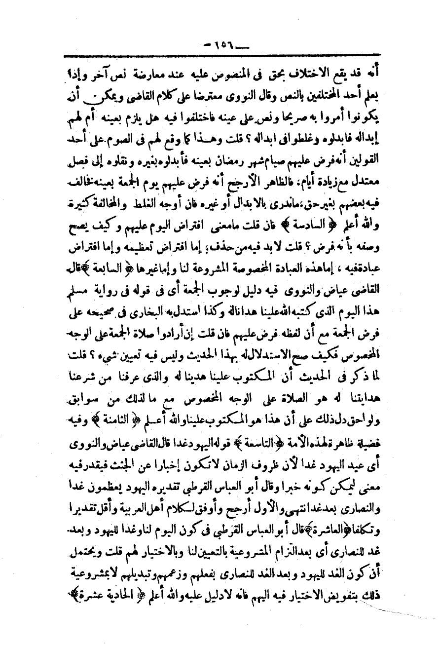 (الْعَاشِرَةُ) قَالَ أَبُو الْعَبَّاسِ الْقُرْطُبِيُّ فِي كَوْنِ الْيَوْمِ لَنَا وَغَدًا لِلْيَهُودِ وَبَعْدَ غَدٍ لِلنَّصَارَى أَيْ بَعْدَ الْتِزَامِ الْمَشْرُوعِيَّةِ بِالتَّعْيِينِ لَنَا وَبِالِاخْتِيَارِ لَهُمْ قُلْت وَيُحْتَمَلُ أَنَّ كَوْنَ الْغَدِ لِلْيَهُودِ وَبَعْدَ الْغَدِ لِلنَّصَارَى بِفِعْلِهِمْ وَزَعْمِهِمْ وَتَبْدِيلِهِمْ لَا بِمَشْرُوعِيَّةِ ذَلِكَ بِتَفْوِيضِ الِاخْتِيَارِ فِيهِ إلَيْهِمْ فَإِنَّهُ لَا دَلِيلَ عَلَيْهِ وَاَللَّهُ أَعْلَمُ.