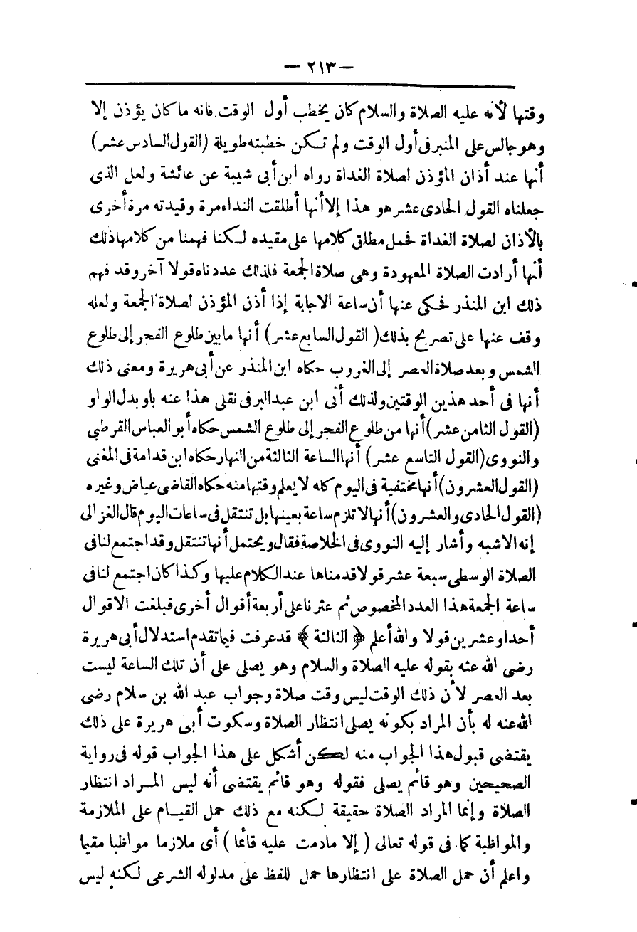 (الْقَوْلُ الْحَادِي وَالْعِشْرُونَ) أَنَّهَا لَا تَلْزَمُ سَاعَةً بِعَيْنِهَا بَلْ تَنْتَقِلُ فِي سَاعَاتِ الْيَوْمِ قَالَ الْغَزَالِيُّ إنَّهُ الْأَشْبَهُ وَأَشَارَ إلَيْهِ النَّوَوِيُّ فِي الْخُلَاصَةِ فَقَالَ وَيَحْتَمِلُ أَنَّهَا تَنْتَقِلُ وَقَدْ اجْتَمَعَ لَنَا فِي الصَّلَاةِ الْوُسْطَى سَبْعَةَ عَشَرَ قَوْلًا قَدَّمْنَاهَا عِنْدَ الْكَلَامِ عَلَيْهَا وَكَذَا كَانَ اجْتَمَعَ لَنَا فِي سَاعَةِ الْجُمُعَةِ هَذَا الْعَدَدُ الْمَخْصُوصُ ثُمَّ عَثَرْنَا عَلَى أَرْبَعَةِ أَقْوَالٍ أُخْرَى فَبَلَغَتْ الْأَقْوَالُ وَاحِدًا وَعِشْرِينَ قَوْلًا وَاَللَّهُ أَعْلَمُ.