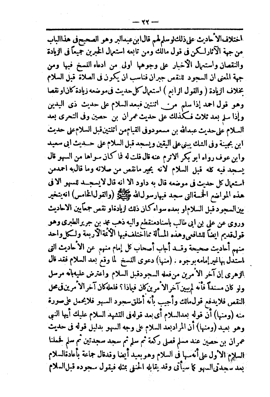 (وَمِنْهَا) أَنَّ الْمُرَادَ بَعْدَ السَّلَامِ عَلَى وَجْهِ السَّهْوِ بِدَلِيلِ قَوْلِهِ فِي حَدِيثِ عِمْرَانَ بْنِ حُصَيْنٍ عِنْدَ مُسْلِمٍ «فَصَلَّى رَكْعَةً ثُمَّ سَلَّمَ ثُمَّ سَجَدَ سَجْدَتَيْنِ ثُمَّ سَلَّمَ» فَحَمَلْنَا السَّلَامَ الْأَوَّلَ عَلَى أَنَّهُ سَهَا فِي السَّلَامِ وَهُوَ بَعِيدٌ أَيْضًا وَقَدْ قَالَ جَمَاعَةٌ بِإِعَادَةِ السَّلَامِ بَعْدَ سَجْدَتَيْ السَّهْوِ كَمَا سَيَأْتِي وَقَدْ يُقَابِلُهُ الْحَنَفِيُّ بِمِثْلِهِ فَيَقُولُ سُجُودُهُ قَبْلَ السَّلَامِ
