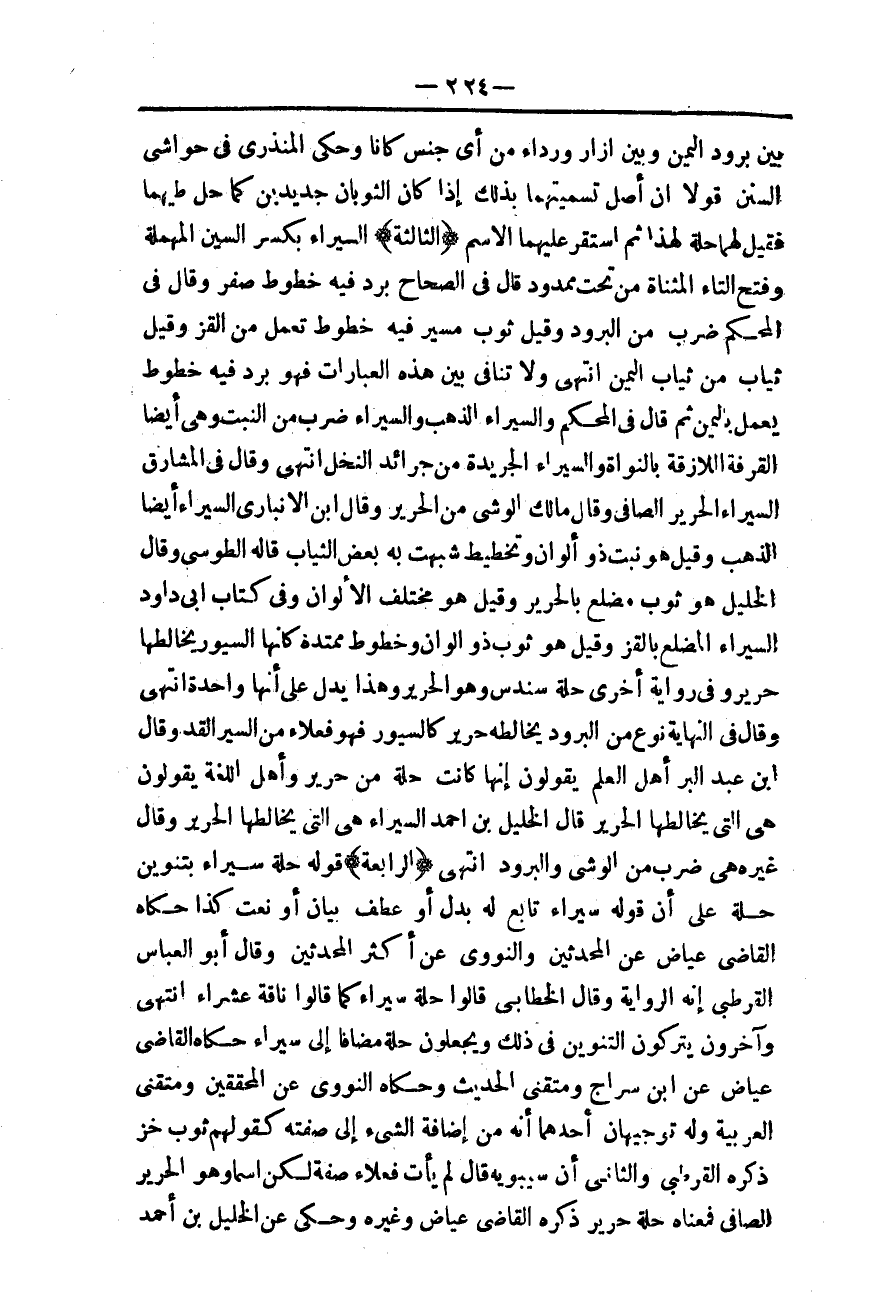 وَقَالَ فِي النِّهَايَةِ نَوْعٌ مِنْ الْبُرُودِ يُخَالِطُهُ حَرِيرٌ كَالسُّيُورِ فَهُوَ فَعَلَاءُ مِنْ السَّيْرِ الْقَدِّ، وَقَالَ ابْنُ عَبْدِ الْبَرِّ أَهْلُ الْعِلْمِ يَقُولُونَ إنَّهَا كَانَتْ حُلَّةً مِنْ حَرِيرٍ، وَأَهْلُ اللُّغَةِ يَقُولُونَ هِيَ الَّتِي يُخَالِطُهَا الْحَرِيرُ قَالَ الْخَلِيلُ بْنُ أَحْمَدَ السِّيَرَاءُ هِيَ الَّتِي يُخَالِطُهَا الْحَرِيرُ، وَقَالَ غَيْرُهُ هِيَ ضَرْبٌ مِنْ الْوَشْيِ وَالْبُرُودِ انْتَهَى.