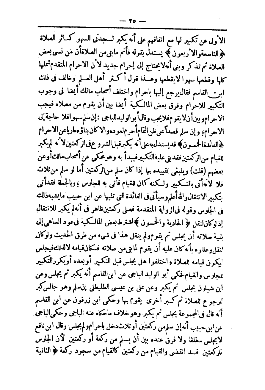 {الْحَادِيَةُ وَالْخَمْسُونَ} اشْتَرَطَ بَعْضُ الْمَالِكِيَّةِ فِي عَوْدِ السَّاهِي إلَى بَقِيَّةِ صَلَاتِهِ أَنْ يَجْلِسَ ثُمَّ يَقُومَ وَلَمْ يُنْقَلْ هَذَا فِي شَيْءٍ مِنْ طُرُقِ الْحَدِيثِ وَلَوْ كَانَ لَنُقِلَ وَعَلَّلُوهُ بِأَنَّهُ كَانَ عَلَيْهِ أَنْ يَقُومَ لِمَا بَقِيَ مِنْ صَلَاتِهِ فَكَانَ قِيَامُهُ لَا لِذَلِكَ فَيَجْلِسُ لِيَكُونَ قِيَامُهُ لِلصَّلَاةِ وَاخْتَلَفُوا هَلْ يَجْلِسُ قَبْلَ التَّكْبِيرِ أَوْ بَعْدَهُ أَوْ يُكَرِّرُ التَّكْبِيرَ لِلْجُلُوسِ وَالْقِيَامِ فَحَكَى أَبُو الْوَلِيدِ الْبَاجِيَّ عَنْ ابْنِ الْقَاسِمِ أَنَّهُ يُكَبِّرُ ثُمَّ يَجْلِسُ وَعَنْ ابْنِ شَبْلُونٍ يَجْلِسُ ثُمَّ يُكَبِّرُ وَعَنْ عَلِيِّ بْنِ عِيسَى الطُّلَيْطِلِيِّ إنْ سَلَّمَ وَهُوَ جَالِسٌ كَبَّرَ لِلرُّجُوعِ لِلصَّلَاةِ ثُمَّ كَبَّرَ أُخْرَى يَقُومُ بِهَا وَحَكَى ابْنُ زَرْقُونٍ عَنْ ابْنِ الْقَاسِمِ أَنَّهُ قَالَ فِي الْمَجْمُوعَةِ يَجْلِسُ ثُمَّ يُكَبِّرُ وَهُوَ خِلَافُ مَا حَكَاهُ عَنْهُ الْبَاجِيَّ وَحَكَى الْبَاجِيَّ عَنْ ابْنِ حَبِيبٍ أَنَّهُ إنْ سَلَّمَ مِنْ رَكْعَتَيْنِ أَوْ ثَلَاثٍ دَخَلَ بِإِحْرَامٍ وَلَمْ يَجْلِسْ وَقَالَ ابْنُ نَافِعٍ لَا يَجْلِسُ مُطْلَقًا وَلَا فَرْقَ عِنْدَهُ بَيْنَ أَنْ يُسَلِّمَ مِنْ رَكْعَةٍ أَوْ رَكْعَتَيْنِ لِأَنَّ الْجُلُوسَ لِلرَّكْعَتَيْنِ قَدْ انْقَضَى وَالْقِيَامُ مِنْ رَكْعَتَيْنِ كَالْقِيَامِ مِنْ سُجُودِ رَكْعَةٍ.