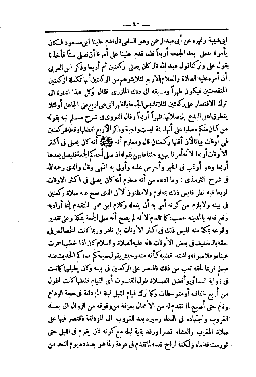 ـــــــــــــــــــــــــــــQوَغَيْرِهِ عَنْ أَبِي عَبْدِ الرَّحْمَنِ وَهُوَ السُّلَمِيُّ قَالَ قَدِمَ عَلَيْنَا ابْنُ مَسْعُودٍ فَكَانَ يَأْمُرُنَا أَنْ نُصَلِّيَ بَعْدَ الْجُمُعَةِ أَرْبَعًا فَلَمَّا قَدِمَ عَلَيْنَا عَلِيٌّ أَمَرَنَا أَنْ نُصَلِّيَ سِتًّا فَأَخَذْنَا بِقَوْلِ عَلِيٍّ وَتَرَكْنَا قَوْلَ عَبْدِ اللَّهِ قَالَ كَانَ يُصَلِّي رَكْعَتَيْنِ ثُمَّ أَرْبَعًا وَذَكَرَ ابْنُ الْعَرَبِيِّ أَنَّ أَمْرَهُ - عَلَيْهِ الصَّلَاةُ وَالسَّلَامُ - بِالْأَرْبَعِ لِئَلَّا يُتَوَهَّمَ مِنْ الرَّكْعَتَيْنِ أَنَّهَا تَكْمِلَةَ الرَّكْعَتَيْنِ الْمُتَقَدِّمَتَيْنِ فَيَكُونَ ظُهْرًا وَسَبَقَهُ إلَى ذَلِكَ الْمَازِرِيُّ فَقَالَ وَكُلُّ هَذَا إشَارَةٌ إلَى تَرْكِ الِاقْتِصَارِ عَلَى رَكْعَتَيْنِ لِئَلَّا تَلْتَبِسَ الْجُمُعَةُ بِالظُّهْرِ الَّتِي هِيَ أَرْبَعٌ عَلَى الْجَاهِلِ أَوْ لِئَلَّا يَتَطَرَّقَ أَهْلُ الْبِدَعِ إلَى صَلَاتِهَا ظُهْرًا أَرْبَعًا.