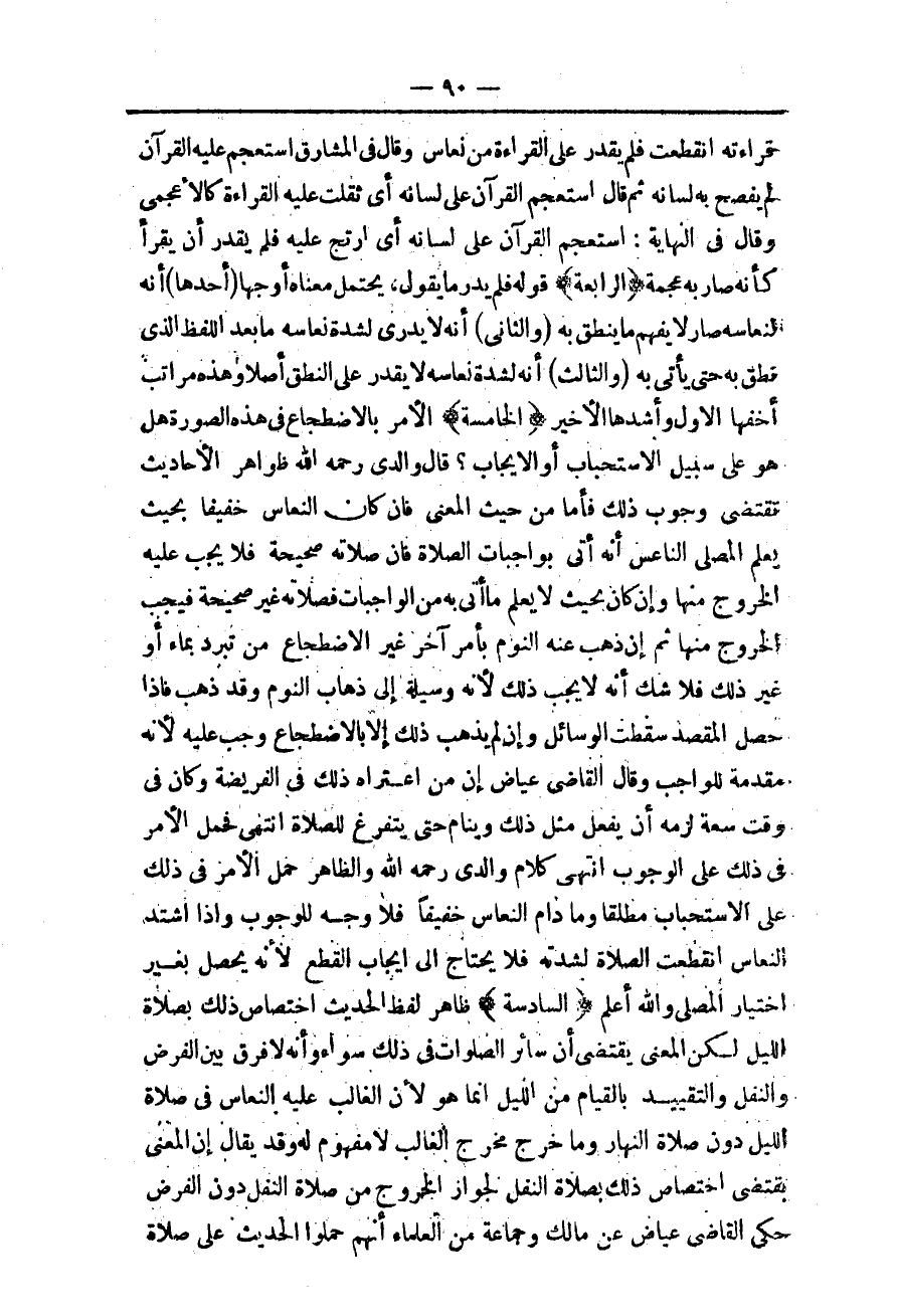 ـــــــــــــــــــــــــــــQقِرَاءَتُهُ انْقَطَعَتْ فَلَمْ يَقْدِرْ عَلَى الْقِرَاءَةِ مِنْ نُعَاسٍ وَقَالَ فِي الْمَشَارِقِ اسْتَعْجَمَ عَلَيْهِ الْقُرْآنُ لَمْ يُفْصِحْ بِهِ لِسَانُهُ ثُمَّ قَالَ اسْتَعْجَمَ الْقُرْآنُ عَلَى لِسَانِهِ أَيْ ثَقُلَتْ عَلَيْهِ الْقِرَاءَةُ كَالْأَعْجَمِيِّ وَقَالَ فِي النِّهَايَةِ: اسْتَعْجَمَ الْقُرْآنُ عَلَى لِسَانِهِ أَيْ ارْتَجَّ عَلَيْهِ فَلَمْ يَقْدِرْ أَنْ يَقْرَأَ كَأَنَّهُ صَارَ بِهِ عُجْمَةٌ.