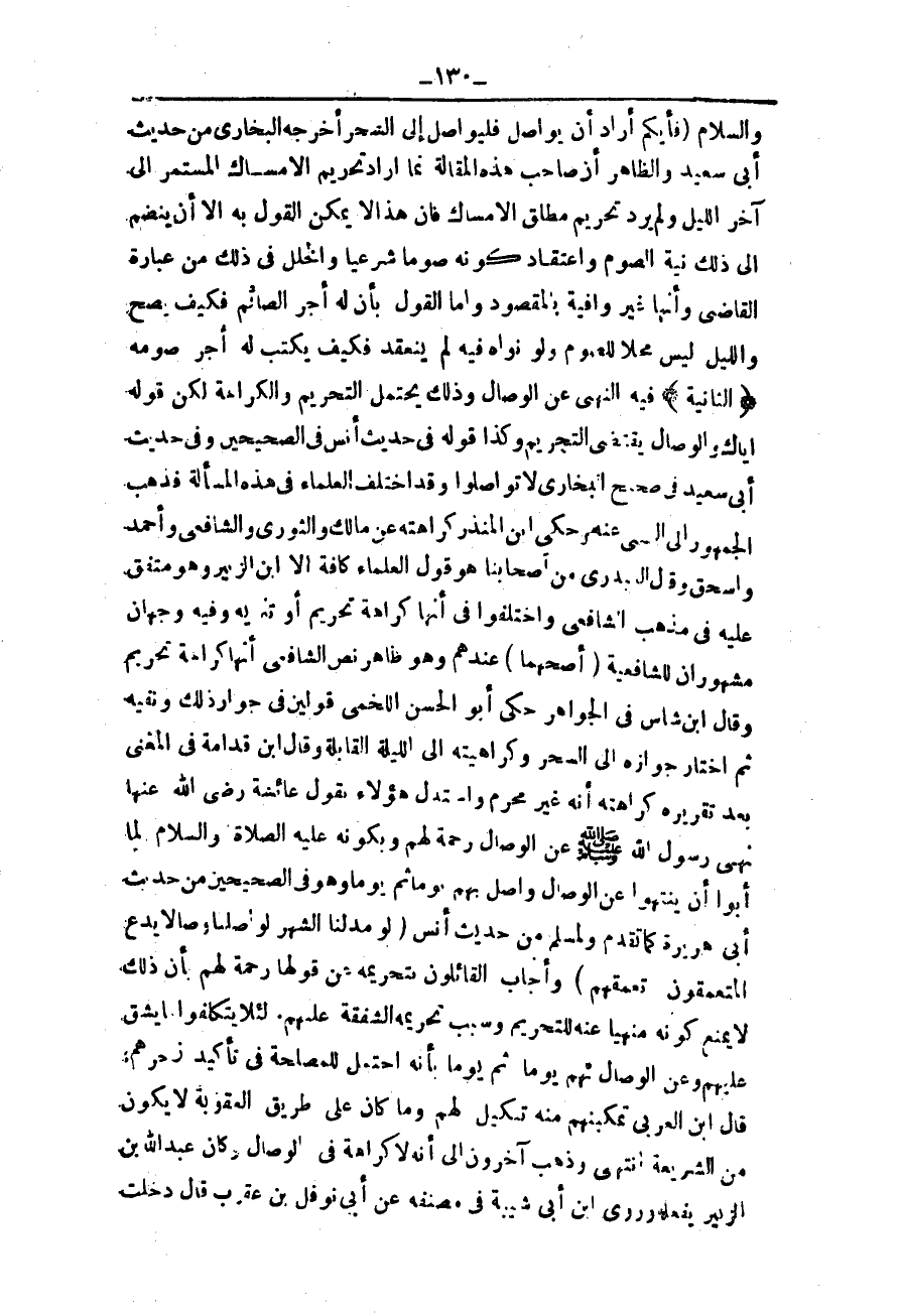 قَالَ ابْنُ الْعَرَبِيِّ تَمْكِينُهُمْ مِنْهُ تَنْكِيلٌ لَهُمْ وَمَا كَانَ عَلَى طَرِيقِ الْعُقُوبَةِ لَا يَكُونُ مِنْ الشَّرِيعَةِ انْتَهَى وَذَهَبَ آخَرُونَ إلَى أَنَّهُ لَا كَرَاهَةَ فِي الْوِصَالِ وَكَانَ عَبْدُ اللَّهِ بْنُ الزُّبَيْرِ يَفْعَلُهُ، وَرَوَى ابْنُ شَيْبَةَ فِي مُصَنَّفِهِ عَنْ أَبِي نَوْفَلِ بْنِ عَقْرَبٍ قَالَ دَخَلْت