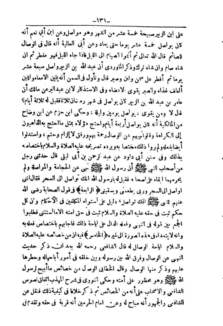 وَفِي الِاسْتِذْكَارِ لِابْنِ عَبْدِ الْبَرِّ عَنْ مَالِكٍ أَنَّ عَامِرَ بْنَ عَبْدِ اللَّهِ بْنِ الزُّبَيْرِ كَانَ يُوَاصِلُ فِي شَهْرِ رَمَضَانَ ثَلَاثًا فَقِيلَ لَهُ ثَلَاثَةُ أَيَّامٍ؟ قَالَ لَا وَمَنْ يَقْوَى، يُوَاصِلُ يَوْمَيْنِ وَلَيْلَةً، وَحَكَى ابْنُ حَزْمٍ عَنْ ابْنِ وَضَّاحٍ مِنْ الْمَالِكِيَّةِ أَنَّهُ كَانَ يُوَاصِلُ أَرْبَعَةَ أَيَّامٍ وَاحْتَجَّ هَؤُلَاءِ بِمِثْلِ مَا احْتَجَّ بِهِ الذَّاهِبُونَ إلَى الْكَرَاهَةِ وَقَالُوا نَهْيُهُمْ عَنْ الْوِصَالِ رَحْمَةٌ بِهِمْ وَرِفْقٌ لَا إلْزَامٌ وَحَتْمٌ.