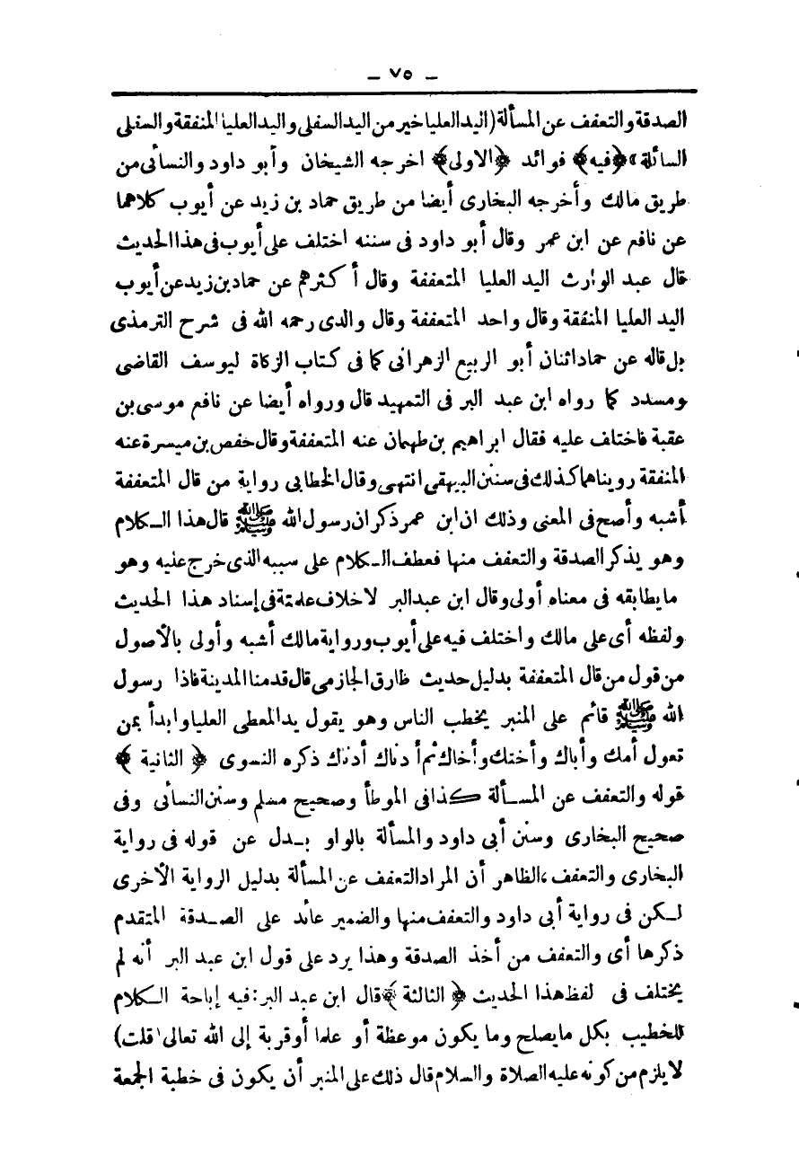 وَقَالَ ابْنُ عَبْدِ الْبَرِّ لَا خِلَافَ عَلِمْته فِي إسْنَادِ هَذَا الْحَدِيثِ وَلَفْظِهِ أَيْ عَلَى مَالِكٍ، وَاخْتُلِفَ فِيهِ عَلَى أَيُّوبَ وَرِوَايَةُ مَالِكٍ أَشْبَهُ وَأَوْلَى بِالْأُصُولِ مِنْ قَوْلِ مَنْ قَالَ الْمُتَعَفِّفَةُ