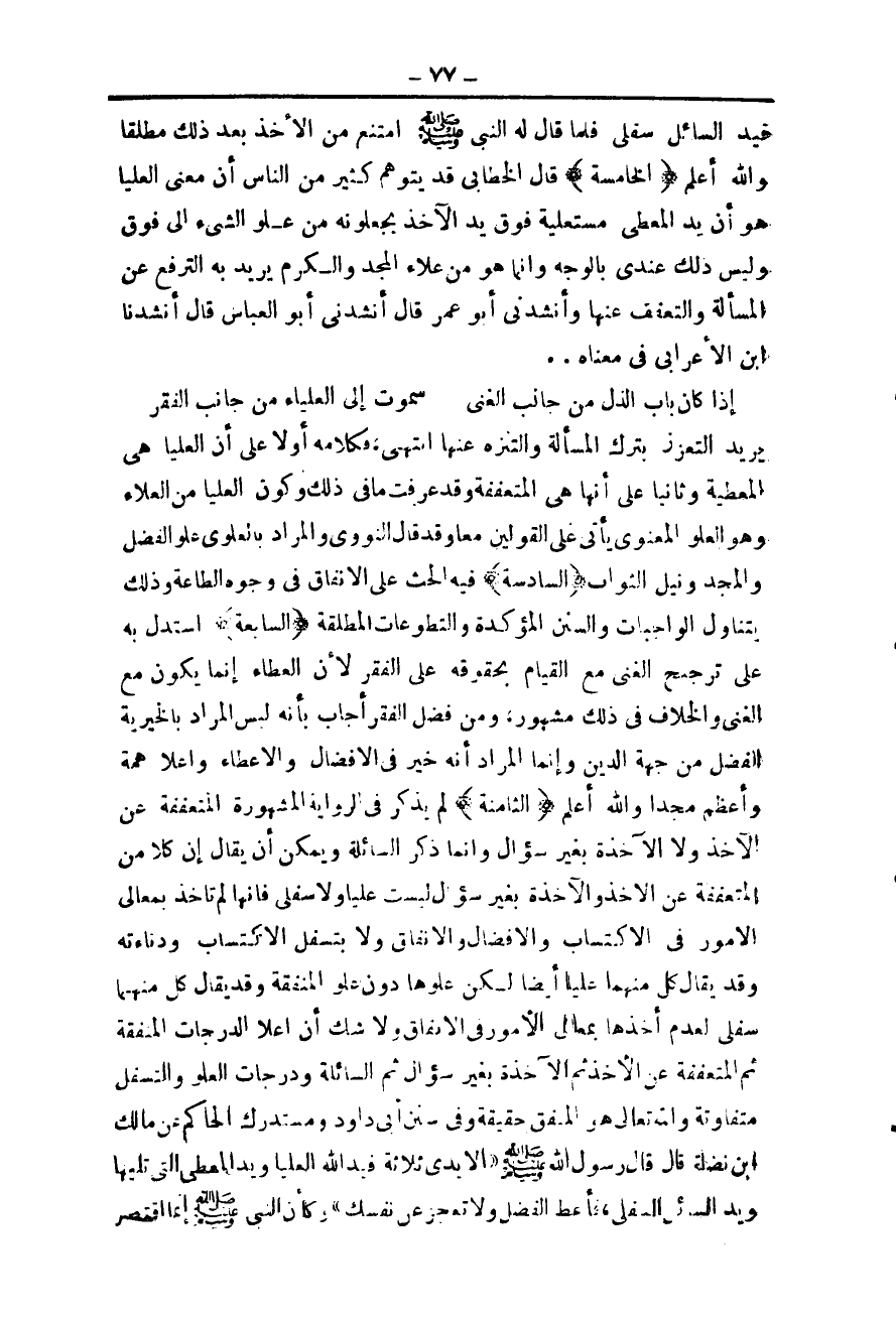 ـــــــــــــــــــــــــــــQفَيَدُ السَّائِلِ سُفْلَى فَلَمَّا قَالَ لَهُ النَّبِيُّ - صَلَّى اللَّهُ عَلَيْهِ وَسَلَّمَ - امْتَنَعَ مِنْ الْأَخْذِ بَعْدَ ذَلِكَ مُطْلَقًا» وَاَللَّهُ أَعْلَمُ.