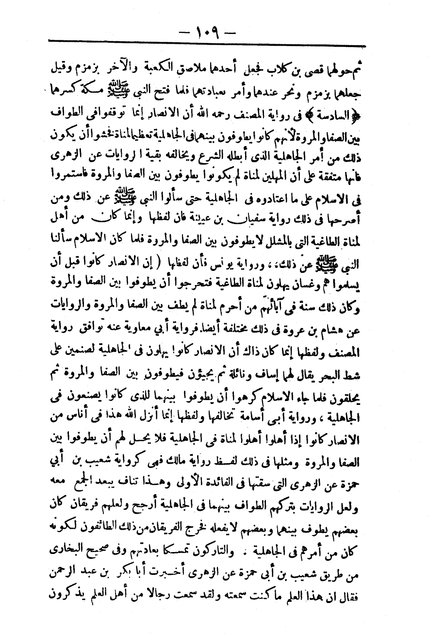 وَمِثْلُهَا فِي ذَلِكَ لَفْظُ رِوَايَةِ مَالِكٍ فَهِيَ كَرِوَايَةِ شُعَيْبِ بْنِ أَبِي حَمْزَةَ عَنْ الزُّهْرِيِّ الَّتِي سُقْتُهَا فِي الْفَائِدَةِ الْأُولَى وَهَذَا تَنَافٍ يَبْعُدُ الْجَمْعُ مَعَهُ وَلَعَلَّ الرِّوَايَاتِ بِتَرْكِهِمْ الطَّوَافَ بَيْنَهُمَا فِي الْجَاهِلِيَّةِ أَرْجَحُ وَلَعَلَّهُمْ فَرِيقَانِ كَانَ بَعْضُهُمْ يَطُوفُ بَيْنَهُمَا وَبَعْضُهُمْ لَا يَفْعَلُهُ فَخَرَجَ الْفَرِيقَانِ مِنْ ذَلِكَ الطَّائِفُونَ لِكَوْنِهِ كَانَ مِنْ أَمْرِهِمْ فِي الْجَاهِلِيَّةِ.
