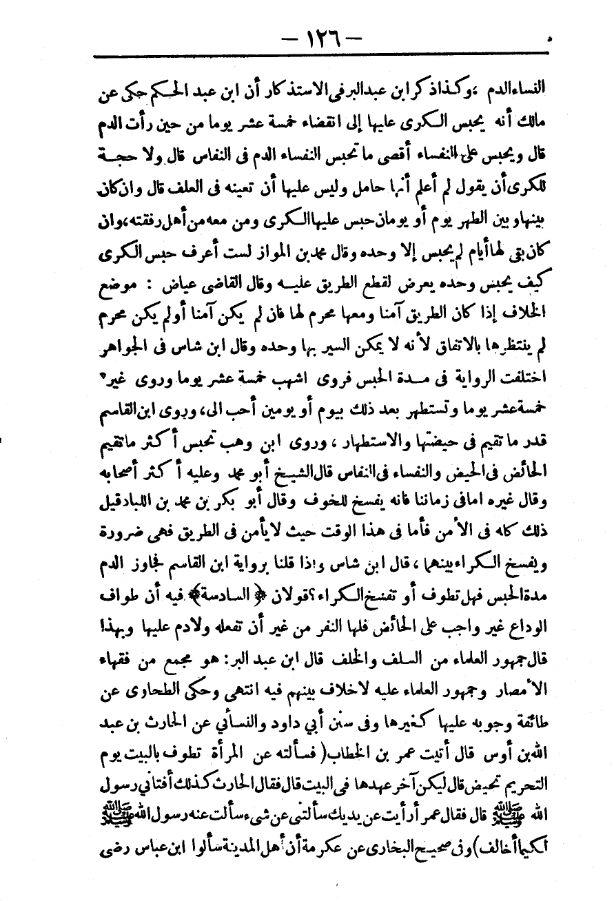 ـــــــــــــــــــــــــــــQالنِّسَاءُ الدَّمَ» ، وَكَذَا ذَكَرَ ابْنُ عَبْدِ الْبَرِّ فِي الِاسْتِذْكَارِ أَنَّ ابْنَ عَبْدِ الْحَكَمِ حَكَى عَنْ مَالِكٍ أَنَّهُ يُحْبَسُ الْكَرِيُّ عَلَيْهَا إلَى انْقِضَاءِ خَمْسَةَ عَشَرَ يَوْمًا مِنْ حِينِ رَأَتْ الدَّمَ قَالَ وَيُحْبَسُ عَلَى النُّفَسَاءِ أَقْصَى مَا تَحْبِسُ النُّفَسَاءُ الدَّمَ فِي النِّفَاسِ قَالَ وَلَا حُجَّةَ لِلْكَرِيِّ أَنْ يَقُولَ لَمْ أَعْلَمْ أَنَّهَا حَامِلٌ وَلَيْسَ عَلَيْهَا أَنْ تُعِينَهُ فِي الْعَلَفِ قَالَ وَإِنْ كَانَ بَيْنَهَا وَبَيْنَ الطُّهْرِ يَوْمٌ أَوْ يَوْمَانِ حُبِسَ عَلَيْهَا الْكَرِيُّ وَمَنْ مَعَهُ مِنْ أَهْلِ رُفْقَتِهِ، وَإِنْ كَانَ بَقِيَ لَهَا أَيَّامٌ لَمْ يُحْبَسْ إلَّا وَحْدَهُ وَقَالَ مُحَمَّدُ بْنُ الْمَوَّازِ لَسْت أَعْرِفُ حَبْسَ الْكَرِيِّ كَيْفَ يُحْبَسُ وَحْدَهُ يُعَرَّضُ لِقَطْعِ الطَّرِيقِ عَلَيْهِ وَقَالَ الْقَاضِي عِيَاضٌ: مَوْضِعُ الْخِلَافِ إذَا كَانَ الطَّرِيقُ آمِنًا وَمَعَهَا مَحْرَمٌ لَهَا فَإِنْ لَمْ يَكُنْ آمِنًا أَوْ لَمْ يَكُنْ مَحْرَمٌ لَمْ يَنْتَظِرْهَا بِالِاتِّفَاقِ لِأَنَّهُ لَا يُمْكِنُ السَّيْرُ بِهَا وَحْدَهُ وَقَالَ ابْنُ شَاسٍ فِي الْجَوَاهِرِ اخْتَلَفَتْ الرِّوَايَةُ فِي مُدَّةِ الْحَبْسِ فَرَوَى أَشْهَبُ خَمْسَةَ عَشَرَ يَوْمًا وَرَوَى غَيْرُهُ خَمْسَةَ عَشَرَ يَوْمًا وَتَسْتَطْهِرُ بَعْدَ ذَلِكَ بِيَوْمٍ أَوْ يَوْمَيْنِ أَحَبُّ إلَيَّ، وَرَوَى ابْنُ الْقَاسِمِ قَدْرَ مَا تُقِيمُ فِي حَيْضَتِهَا وَالِاسْتِطْهَارُ، وَرَوَى ابْنُ وَهْبٍ تُحْبَسُ أَكْثَرَ مَا تُقِيمُ الْحَائِضُ فِي الْحَيْضِ وَالنُّفَسَاءُ فِي النِّفَاسِ قَالَ الشَّيْخُ أَبُو مُحَمَّدٍ وَعَلَيْهِ أَكْثَرُ أَصْحَابِهِ وَقَالَ غَيْرُهُ أَمَّا فِي زَمَانِنَا فَإِنَّهُ يُفْسَخُ لِلْخَوْفِ وَقَالَ أَبُو بَكْرِ بْنُ مُحَمَّدِ بْنِ اللَّبَّادِ قِيلَ ذَلِكَ كُلُّهُ فِي الْأَمْنِ فَأَمَّا فِي هَذَا الْوَقْتِ حَيْثُ لَا يَأْمَنُ فِي الطَّرِيقِ فَهِيَ ضَرُورَةٌ وَيُفْسَخُ الْكِرَاءُ بَيْنَهُمَا. قَالَ ابْنُ شَاسٍ وَإِذَا قُلْنَا بِرِوَايَةِ ابْنِ الْقَاسِمِ فَجَاوَزَ الدَّمُ مُدَّةَ الْحَبْسِ فَهَلْ تَطُوفُ أَوْ تَفْسَخُ الْكِرَاءَ؟ قَوْلَانِ.