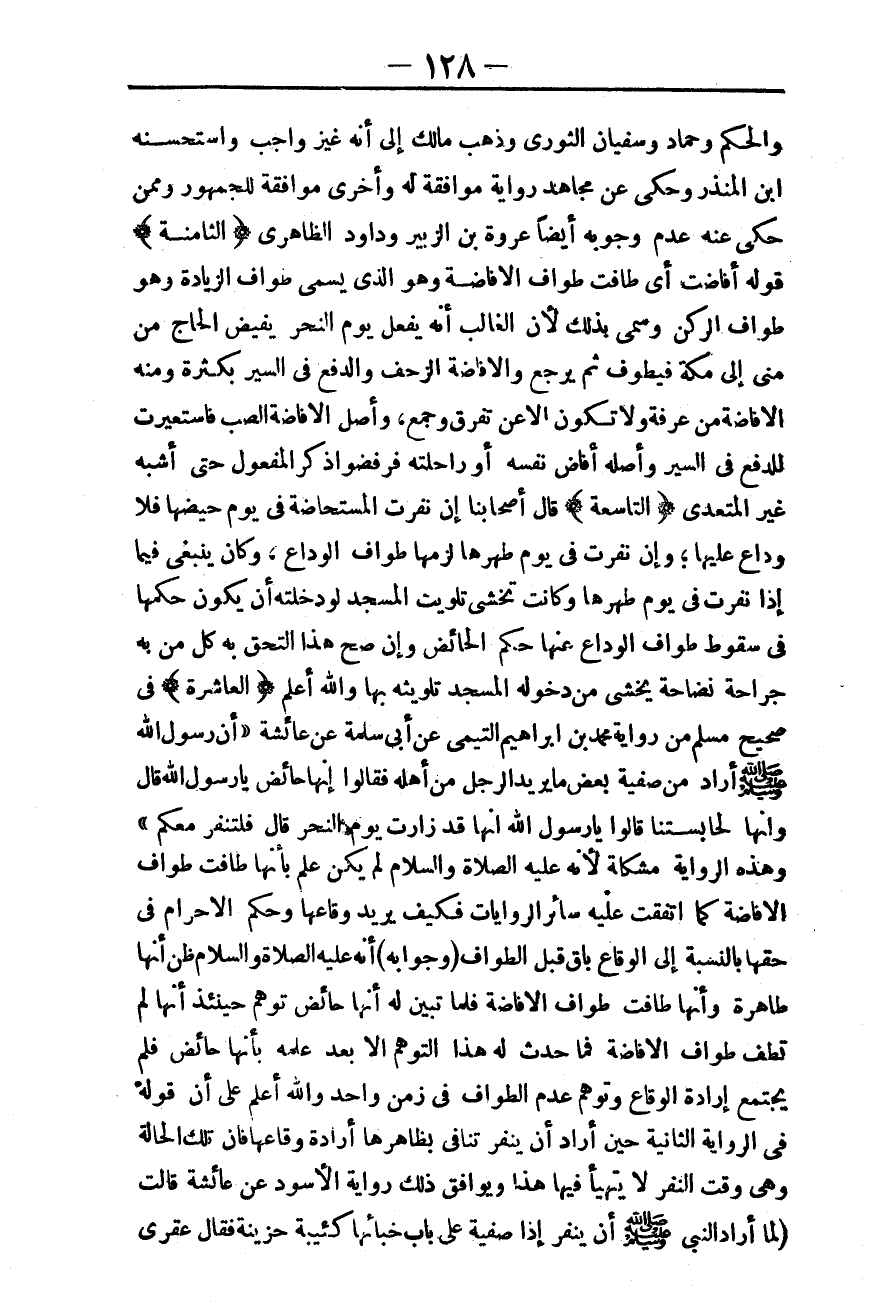 ـــــــــــــــــــــــــــــQوَالْحَكَمِ وَحَمَّادٌ وَسُفْيَانُ الثَّوْرِيُّ وَذَهَبَ مَالِكٌ إلَى أَنَّهُ غَيْرُ وَاجِبٍ وَاسْتَحْسَنَهُ ابْنُ الْمُنْذِرِ وَحَكَى عَنْ مُجَاهِدٍ رِوَايَةً مُوَافِقَةً لَهُ وَأُخْرَى مُوَافِقَةً لِلْجُمْهُورِ وَمِمَّنْ حَكَى عَنْهُ عَدَمَ وُجُوبِهِ أَيْضًا عُرْوَةُ بْنُ الزُّبَيْرِ وَدَاوُد الظَّاهِرِيِّ {الثَّامِنَةُ} قَوْلُهُ أَفَاضَتْ أَيْ طَافَتْ طَوَافَ الْإِفَاضَةِ وَهُوَ الَّذِي يُسَمَّى طَوَافَ الزِّيَادَةِ وَهُوَ طَوَافُ الرُّكْنِ وَسُمِّيَ بِذَلِكَ لِأَنَّ الْغَالِبَ أَنَّهُ يَفْعَلُ يَوْمَ النَّحْرِ يُفِيضُ الْحَاجُّ مِنْ مِنًى إلَى مَكَّةَ فَيَطُوفُ ثُمَّ يَرْجِعُ وَالْإِفَاضَةُ الزَّحْفُ وَالدَّفْعُ فِي السَّيْرِ بِكَثْرَةٍ وَمِنْهُ الْإِفَاضَةُ مِنْ عَرَفَةَ وَلَا تَكُونُ إلَّا عَنْ تَفَرُّقٍ وَجَمْعٍ، وَأَصْلُ الْإِفَاضَةِ الصَّبُّ فَاسْتُعِيرَتْ لِلدَّفْعِ فِي السَّيْرِ وَأَصْلُهُ أَفَاضَ نَفْسَهُ أَوْ رَاحِلَتَهُ فَرَفَضُوا ذِكْرَ الْمَفْعُولِ حَتَّى أَشْبَهَ غَيْرَ الْمُتَعَدِّي
