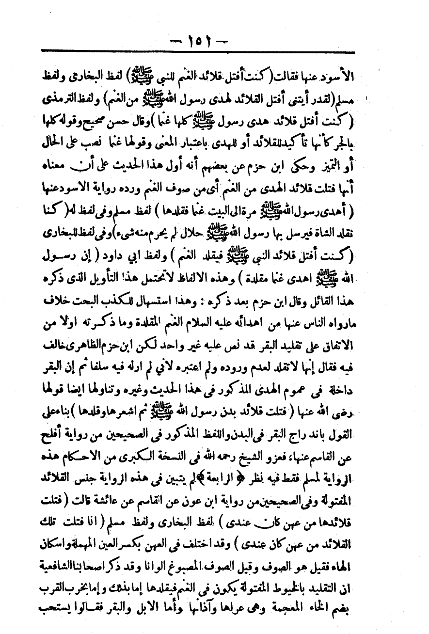 ـــــــــــــــــــــــــــــQالْأَسْوَدِ عَنْهَا فَقَالَتْ «كُنْت أَفْتِلُ قَلَائِدَ الْغَنَمِ لِلنَّبِيِّ - صَلَّى اللَّهُ عَلَيْهِ وَسَلَّمَ -» لَفْظُ الْبُخَارِيِّ وَلَفْظُ مُسْلِمٍ «لَقَدْ رَأَيْتنِي أَفْتِلُ الْقَلَائِدَ لِهَدْيِ رَسُولِ اللَّهِ - صَلَّى اللَّهُ عَلَيْهِ وَسَلَّمَ - مِنْ الْغَنَمِ» وَلَفْظُ التِّرْمِذِيِّ «كُنْت أَفْتِلُ قَلَائِدَ هَدْيِ رَسُولِ - صَلَّى اللَّهُ عَلَيْهِ وَسَلَّمَ - كُلِّهَا غَنَمًا» وَقَالَ حَسَنٌ صَحِيحٌ وَقَوْلُهُ كُلِّهَا بِالْجَرِّ كَأَنَّهَا تَأْكِيدٌ لِلْقَلَائِدِ أَوْ لِلْهَدْيِ بِاعْتِبَارِ الْمَعْنَى وَقَوْلُهَا غَنَمًا نُصِبَ عَلَى الْحَالِ أَوْ التَّمَيُّزِ وَحَكَى ابْنُ حَزْمٍ عَنْ بَعْضِهِمْ أَنَّهُ أَوَّلَ هَذَا الْحَدِيثَ عَلَى أَنَّ مَعْنَاهُ أَنَّهَا فَتَلَتْ قَلَائِدَ الْهَدْيِ مِنْ الْغَنَمِ أَيْ مِنْ صُوفِ الْغَنَمِ وَرَدَّهُ رِوَايَةُ الْأَسْوَدِ عَنْهَا «أَهْدَى رَسُولُ اللَّهِ - صَلَّى اللَّهُ عَلَيْهِ وَسَلَّمَ - مَرَّةً إلَى الْبَيْتِ غَنَمًا فَقَلَّدَهَا» لَفْظُ مُسْلِمٍ وَفِي لَفْظٍ لَهُ «كُنَّا نُقَلِّدُ الشَّاةَ فَيُرْسِلُ بِهَا رَسُولُ اللَّهِ - صَلَّى اللَّهُ عَلَيْهِ وَسَلَّمَ - حَلَالٌ لَمْ يَحْرُمْ مِنْهُ شَيْءٌ» وَفِي لَفْظٍ لِلْبُخَارِيِّ «كُنْت أَفْتِلُ قَلَائِدَ النَّبِيِّ - صَلَّى اللَّهُ عَلَيْهِ وَسَلَّمَ - فَيُقَلِّدُ الْغَنَمَ» وَلَفْظُ أَبِي دَاوُد «إنَّ رَسُولَ اللَّهِ - صَلَّى اللَّهُ عَلَيْهِ وَسَلَّمَ - أَهْدَى غَنَمًا مُقَلَّدَةً» وَهَذِهِ الْأَلْفَاظُ لَا تَحْتَمِلُ هَذَا التَّأْوِيلَ الَّذِي ذَكَرَهُ هَذَا الْقَائِلُ وَقَالَ ابْنُ حَزْمٍ بَعْدَ ذِكْرِهِ: وَهَذَا اسْتِسْهَالٌ لِلْكَذِبِ الْبَحْتِ خِلَافُ مَا رَوَاهُ النَّاسُ عَنْهَا مِنْ إهْدَائِهِ - عَلَيْهِ السَّلَامُ - الْغَنَمَ الْمُقَلَّدَةَ وَمَا ذَكَرْته أَوَّلًا مِنْ الِاتِّفَاقِ عَلَى تَقْلِيدِ الْبَقَرِ قَدْ نَصَّ عَلَيْهِ غَيْرُ وَاحِدٍ لَكِنَّ ابْنُ حَزْمٍ الظَّاهِرِيَّ خَالَفَ فِيهِ فَقَالَ إنَّهَا لَا تُقَلَّدُ لِعَدَمِ وُرُودِهِ وَلَمْ أَعْتَبِرْهُ لِأَنِّي لَمْ أَرَ لَهُ فِيهِ سَلَفًا ثُمَّ إنَّ الْبَقَرَ دَاخِلَةٌ فِي عُمُومِ الْهَدْيِ الْمَذْكُورِ فِي هَذَا الْحَدِيثِ وَغَيْرِهِ وَتَنَاوَلَهَا أَيْضًا قَوْلُهَا - رَضِيَ اللَّهُ عَنْهَا - «فَتَلْت قَلَائِدَ بُدْنِ رَسُولِ اللَّهِ - صَلَّى اللَّهُ عَلَيْهِ وَسَلَّمَ - ثُمَّ أَشْعَرَهَا وَقَلَّدَهَا» بِنَاءً عَلَى الْقَوْلِ بِانْدِرَاجِ الْبَقَرِ فِي الْبُدْنِ وَاللَّفْظُ الْمَذْكُورُ فِي الصَّحِيحَيْنِ مِنْ رِوَايَةِ أَفْلَحَ عَنْ الْقَاسِمِ عَنْهَا، فَعَزْوُ الشَّيْخِ - رَحِمَهُ اللَّهُ - فِي النُّسْخَةِ الْكُبْرَى مِنْ الْأَحْكَامِ هَذِهِ الرِّوَايَةَ لِمُسْلِمٍ فَقَطْ فِيهِ نَظَرٌ {الرَّابِعَةُ} لَمْ يَتَبَيَّنْ فِي هَذِهِ الرِّوَايَةِ جِنْسُ الْقَلَائِدِ الْمَفْتُولَةِ وَفِي الصَّحِيحَيْنِ مِنْ رِوَايَةِ ابْنِ عَوْنٍ عَنْ الْقَاسِمِ عَنْ عَائِشَةَ قَالَتْ «فَتَلْت قَلَائِدَهَا مِنْ عِهْنٍ كَانَ عِنْدِي» لَفْظُ الْبُخَارِيِّ وَلَفْظُ مُسْلِمٍ «أَنَا فَتَلْت تِلْكَ الْقَلَائِدَ مِنْ عِهْنٍ كَانَ عِنْدِي» وَقَدْ اُخْتُلِفَ فِي الْعِهْنِ بِكَسْرِ الْعَيْنِ الْمُهْمَلَةِ وَإِسْكَانِ الْهَاءِ فَقِيلَ هُوَ الصُّوفُ وَقِيلَ الصُّوفُ الْمَصْبُوغُ أَلْوَانًا وَقَدْ ذَكَرَ أَصْحَابُنَا الشَّافِعِيَّةُ أَنَّ التَّقْلِيدَ بِالْخُيُوطِ الْمَفْتُولَةِ يَكُونُ فِي الْغَنَمِ فَيُقَلِّدُهَا إمَّا بِذَلِكَ وَإِمَّا بِخُرْبِ الْقِرَبِ بِضَمِّ الْخَاءِ الْمُعْجَمَةِ وَهِيَ عُرَاهَا وَآذَانُهَا وَأَمَّا الْإِبِلُ وَالْبَقَرُ فَقَالُوا يُسْتَحَبُّ
