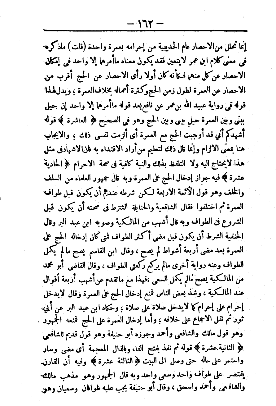 (الثَّالِثَةَ عَشْرَةَ) وَفِيهِ أَنَّ الْقَارِنَ يَقْتَصِرُ عَلَى طَوَافٍ وَاحِدٍ وَسَعْيٍ وَاحِدٍ وَبِهِ قَالَ الْجُمْهُورُ وَهُوَ مَذْهَبُ مَالِكٍ وَالشَّافِعِيِّ وَأَحْمَدَ وَإِسْحَاقُ؛ وَقَالَ أَبُو حَنِيفَةَ يَجِبُ عَلَيْهِ طَوَافَانِ وَسَعْيَانِ وَهُوَ