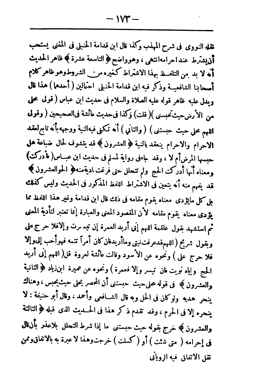 ـــــــــــــــــــــــــــــQنَقَلَهُ النَّوَوِيُّ فِي شَرْحِ الْمُهَذَّبِ وَكَذَا قَالَ ابْنُ قُدَامَةَ الْحَنْبَلِيُّ فِي الْمُغْنِي يُسْتَحَبُّ أَنْ يَشْتَرِطَ عِنْدَ إحْرَامِهِ انْتَهَى.