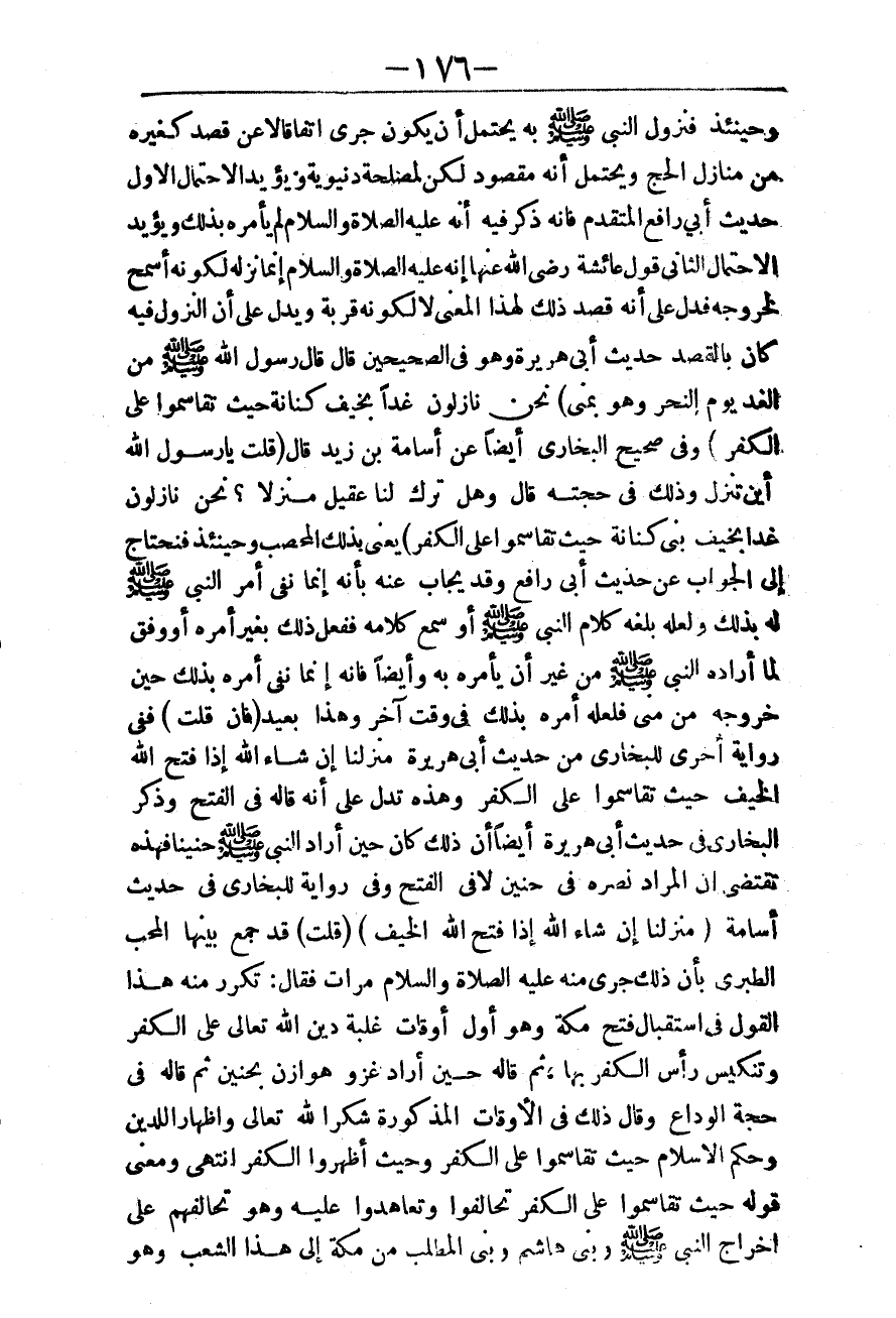 ـــــــــــــــــــــــــــــQوَحِينَئِذٍ فَنُزُولُ النَّبِيِّ - صَلَّى اللَّهُ عَلَيْهِ وَسَلَّمَ - بِهِ يَحْتَمِلُ أَنْ يَكُونَ جَرَى اتِّفَاقًا لَا عَنْ قَصْدٍ كَغَيْرِهِ مِنْ مَنَازِلِ الْحَجِّ وَيَحْتَمِلُ أَنَّهُ مَقْصُودٌ لَكِنْ لِمَصْلَحَةٍ دُنْيَوِيَّةٍ وَيُؤَيِّدُ الِاحْتِمَالَ الْأَوَّلَ حَدِيثُ أَبِي رَافِعٍ الْمُتَقَدِّمُ فَإِنَّهُ ذَكَرَ فِيهِ أَنَّهُ - عَلَيْهِ الصَّلَاةُ وَالسَّلَامُ - لَمْ يَأْمُرْهُ بِذَلِكَ وَيُؤَيِّدُ الِاحْتِمَالَ الثَّانِيَ قَوْلُ عَائِشَةَ - رَضِيَ اللَّهُ عَنْهَا - إنَّهُ - عَلَيْهِ الصَّلَاةُ وَالسَّلَامُ - إنَّمَا نَزَلَهُ لِكَوْنِهِ أَسْمَحَ لِخُرُوجِهِ فَدَلَّ عَلَى أَنَّهُ قَصَدَ ذَلِكَ لِهَذَا الْمَعْنَى لَا لِكَوْنِهِ قُرْبَةً وَيَدُلُّ عَلَى أَنَّ النُّزُولَ فِيهِ كَانَ بِالْقَصْدِ حَدِيثُ أَبِي هُرَيْرَةَ وَهُوَ فِي الصَّحِيحَيْنِ قَالَ قَالَ رَسُولُ اللَّهِ - صَلَّى اللَّهُ عَلَيْهِ وَسَلَّمَ - «مِنْ الْغَدِ يَوْمَ النَّحْرِ وَهُوَ بِمِنًى نَحْنُ نَازِلُونَ غَدًا بِخَيْفِ كِنَانَةَ حَيْثُ تَقَاسَمُوا عَلَى الْكُفْرِ» ، وَفِي صَحِيحِ الْبُخَارِيِّ أَيْضًا عَنْ أُسَامَةَ بْنِ زَيْدٍ قَالَ «قُلْت يَا رَسُولَ اللَّهِ أَيْنَ تَنْزِلُ وَذَلِكَ فِي حَجَّتِهِ قَالَ وَهَلْ تَرَكَ لَنَا عَقِيلٌ مُنْزَلًا؟ نَحْنُ نَازِلُونَ غَدًا بِخَيْفِ بَنِي كِنَانَةَ حَيْثُ تَقَاسَمُوا عَلَى الْكُفْرِ» يَعْنِي بِذَلِكَ الْمُحَصَّبَ وَحِينَئِذٍ فَنَحْتَاجُ إلَى الْجَوَابِ عَنْ حَدِيثِ أَبِي رَافِعٍ وَقَدْ يُجَابُ عَنْهُ بِأَنَّهُ إنَّمَا نَفَى أَمْرَ النَّبِيِّ - صَلَّى اللَّهُ عَلَيْهِ وَسَلَّمَ - لَهُ بِذَلِكَ وَلَعَلَّهُ بَلَغَهُ كَلَامُ النَّبِيِّ - صَلَّى اللَّهُ عَلَيْهِ وَسَلَّمَ - أَوْ سَمِعَ كَلَامَهُ فَفَعَلَ ذَلِكَ بِغَيْرِ أَمْرِهِ أَوْ وُفِّقَ لِمَا أَرَادَهُ النَّبِيُّ - صَلَّى اللَّهُ عَلَيْهِ وَسَلَّمَ - مِنْ غَيْرِ أَنْ يَأْمُرَهُ بِهِ وَأَيْضًا فَإِنَّهُ إنَّمَا نَفَى أَمْرَهُ بِذَلِكَ حِينَ خُرُوجِهِ مِنْ مِنًى فَلَعَلَّهُ أَمَرَهُ بِذَلِكَ فِي وَقْتٍ آخَرَ وَهَذَا بَعِيدٌ (فَإِنْ قُلْت) فَفِي رِوَايَةٍ أُخْرَى لِلْبُخَارِيِّ مِنْ حَدِيثِ أَبِي هُرَيْرَةَ «مُنْزَلُنَا إنْ شَاءَ اللَّهُ إذَا فَتَحَ اللَّهُ الْخَيْفَ حَيْثُ تَقَاسَمُوا عَلَى الْكُفْرِ» وَهَذِهِ تَدُلُّ عَلَى أَنَّهُ قَالَهُ فِي الْفَتْحِ وَذَكَرَ الْبُخَارِيُّ فِي حَدِيثِ أَبِي هُرَيْرَةَ أَيْضًا أَنَّ ذَلِكَ كَانَ حِينَ أَرَادَ النَّبِيُّ - صَلَّى اللَّهُ عَلَيْهِ وَسَلَّمَ - حُنَيْنًا فَهَذِهِ تَقْتَضِي أَنَّ الْمُرَادَ نَصْرُهُ فِي حُنَيْنٍ لَا فِي الْفَتْحِ وَفِي رِوَايَةٍ لِلْبُخَارِيِّ فِي حَدِيثِ أُسَامَةَ «مُنْزَلُنَا إنْ شَاءَ اللَّهُ إذَا فَتَحَ اللَّهُ الْخَيْفَ» (قُلْت) قَدْ جَمَعَ بَيْنَهَا الْمُحِبُّ الطَّبَرِيُّ بِأَنَّ ذَلِكَ جَرَى مِنْهُ - عَلَيْهِ الصَّلَاةُ وَالسَّلَامُ - مَرَّاتٍ فَقَالَ: تَكَرَّرَ مِنْهُ هَذَا الْقَوْلُ فِي اسْتِقْبَالِ فَتْحِ مَكَّةَ وَهُوَ أَوَّلُ أَوْقَاتِ غَلَبَةِ دِينِ اللَّهِ تَعَالَى عَلَى الْكُفْرِ وَتَنْكِيسِ رَأْسِ الْكُفْرِ بِهَا، ثُمَّ قَالَهُ حِينَ أَرَادَ غَزْوَ هَوَازِنَ بِحُنَيْنٍ ثُمَّ قَالَهُ فِي حَجَّةِ الْوَدَاعِ وَقَالَ ذَلِكَ فِي الْأَوْقَاتِ الْمَذْكُورَةِ شُكْرًا لِلَّهِ تَعَالَى وَإِظْهَارًا لِلدِّينِ وَحُكْمُ الْإِسْلَامِ حَيْثُ تَقَاسَمُوا عَلَى الْكُفْرِ وَحَيْثُ أَظْهَرُوا الْكُفْرَ انْتَهَى وَمَعْنَى قَوْلِهِ حَيْثُ تَقَاسَمُوا عَلَى الْكُفْرِ تَحَالَفُوا وَتَعَاهَدُوا عَلَيْهِ وَهُوَ تَحَالُفُهُمْ عَلَى إخْرَاجِ النَّبِيِّ - صَلَّى اللَّهُ عَلَيْهِ وَسَلَّمَ - وَبَنِي هَاشِمٍ 