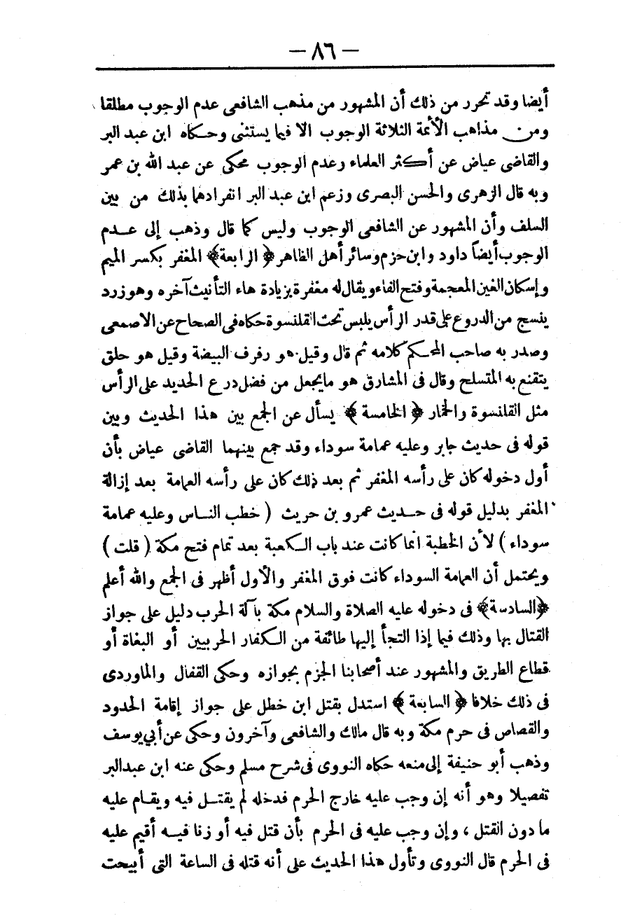 ـــــــــــــــــــــــــــــQأَيْضًا وَقَدْ تَحَرَّرَ مِنْ ذَلِكَ أَنَّ الْمَشْهُورَ مِنْ مَذْهَبِ الشَّافِعِيِّ عَدَمُ الْوُجُوبِ مُطْلَقًا وَمِنْ مَذَاهِبِ الْأَئِمَّةِ الثَّلَاثَةِ الْوُجُوبُ إلَّا فِيمَا يُسْتَثْنَى وَحَكَاهُ ابْنُ عَبْدِ الْبَرِّ وَالْقَاضِي عِيَاضٌ عَنْ أَكْثَرِ الْعُلَمَاءِ وَعَدَمُ الْوُجُوبِ مَحْكِيٌّ عَنْ عَبْدِ اللَّهِ بْنِ عُمَرَ وَبِهِ قَالَ الزُّهْرِيُّ وَالْحَسَنُ الْبَصْرِيُّ وَزَعَمَ ابْنُ عَبْدِ الْبَرِّ انْفِرَادَهُمَا بِذَلِكَ مِنْ بَيْنِ السَّلَفِ وَأَنَّ الْمَشْهُورَ عَنْ الشَّافِعِيِّ الْوُجُوبُ وَلَيْسَ كَمَا قَالَ وَذَهَبَ إلَى عَدَمِ الْوُجُوبِ أَيْضًا دَاوُد وَابْنُ حَزْمٍ وَسَائِرُ أَهْلِ الظَّاهِرِ.