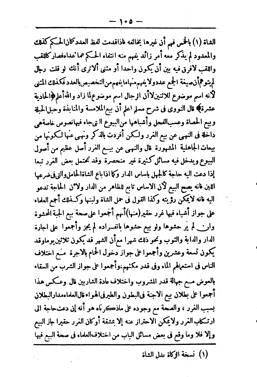 {الْحَادِيَةَ عَشْرَةَ} قَالَ النَّوَوِيُّ فِي شَرْحِ مُسْلِمٍ: اعْلَمْ أَنَّ بَيْعَ الْمُلَامَسَةِ وَالْمُنَابَذَةِ وَحَبَلِ الْحُبْلَةِ وَبَيْعَ الْحَصَاةٍ وَعَسْبِ الْفَحْلِ، وَأَشْبَاهِهَا مِنْ الْبُيُوعِ الَّتِي جَاءَ فِيهَا نُصُوصٌ خَاصَّةٌ هِيَ دَاخِلَةٌ فِي النَّهْيِ عَنْ بَيْعِ الْغَرَرِ وَلَكِنْ أُفْرِدَتْ بِالذِّكْرِ وَنُهِيَ عَنْهَا؛ لِكَوْنِهَا مِنْ بَيْعَاتِ الْجَاهِلِيَّةِ الْمَشْهُورَةِ قَالَ وَالنَّهْيُ عَنْ بَيْعِ الْغَرَرِ أَصْلٌ عَظِيمٌ مِنْ أُصُولِ الْبُيُوعِ وَيَدْخُلُ فِيهِ مَسَائِلُ كَثِيرَةٌ غَيْرُ مُنْحَصِرَةٍ وَقَدْ تَحْتَمِلُ بَعْضَ الْغَرَرِ تَبَعًا إذَا دَعَتْ إلَيْهِ حَاجَةٌ كَالْجَهْلِ بِأَسَاسِ الدَّارِ وَكَمَا إذَا بَاعَ الشَّاةَ الْحَامِلَ وَاَلَّتِي فِي ضَرْعِهَا اللَّبَنُ فَإِنَّهُ يَصِحُّ الْبَيْعُ؛ لِأَنَّ الْأَسَاسَ تَابِعٌ لِلظَّاهِرِ مِنْ الدَّارِ؛ وَلِأَنَّ الْحَاجَةَ تَدْعُو إلَيْهِ فَإِنَّهُ لَا يُمْكِنُ رُؤْيَتُهُ وَكَذَا الْقَوْلُ فِي حَمْلِ الشَّاةِ وَلَبَنِهَا وَكَذَلِكَ أَجْمَعَ الْعُلَمَاءُ عَلَى جَوَازِ أَشْيَاءَ فِيهَا غَرَرٌ حَقِيرٌ.