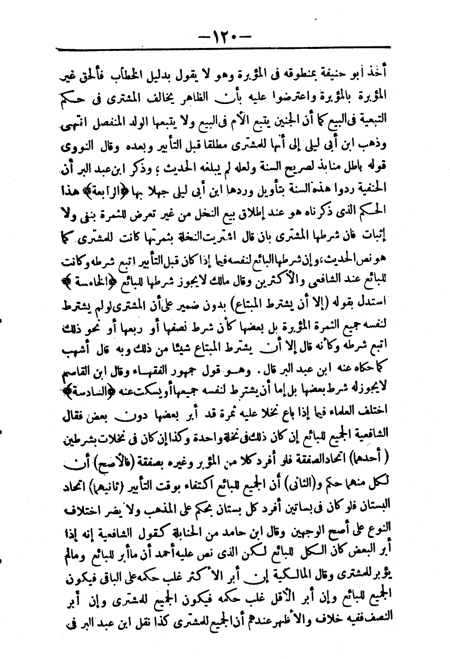 (أَحَدُهُمَا) اتِّحَادُ الصَّفْقَةِ فَلَوْ أَفْرَدَ كُلًّا مِنْ الْمُؤَبَّرِ وَغَيْرِهِ بِصَفْقَةٍ (فَالْأَصَحُّ) أَنَّ لِكُلٍّ مِنْهُمَا حُكْمًا. وَ (الثَّانِي) أَنَّ الْجَمِيعَ لِلْبَائِعِ اكْتِفَاءً بِوَقْتِ التَّأْبِيرِ (ثَانِيهِمَا) اتِّحَادُ الْبُسْتَانِ فَلَوْ كَانَ فِي بَسَاتِينَ أُفْرِدَ كُلُّ بُسْتَانٍ بِحُكْمٍ عَلَى الْمَذْهَبِ وَلَا يَضُرُّ اخْتِلَافُ النَّوْعِ عَلَى أَصَحِّ الْوَجْهَيْنِ وَقَالَ ابْنُ حَامِدٍ مِنْ الْحَنَابِلَةِ كَقَوْلِ الشَّافِعِيَّةِ: إنَّهُ إذَا أَبَّرَ الْبَعْضَ كَانَ الْكُلُّ لِلْبَائِعِ لَكِنَّ الَّذِي نَصَّ عَلَيْهِ أَحْمَدُ أَنَّ مَا أُبِّرَ لِلْبَائِعِ، وَمَا لَمْ يُؤَبَّرْ لِلْمُشْتَرِي.