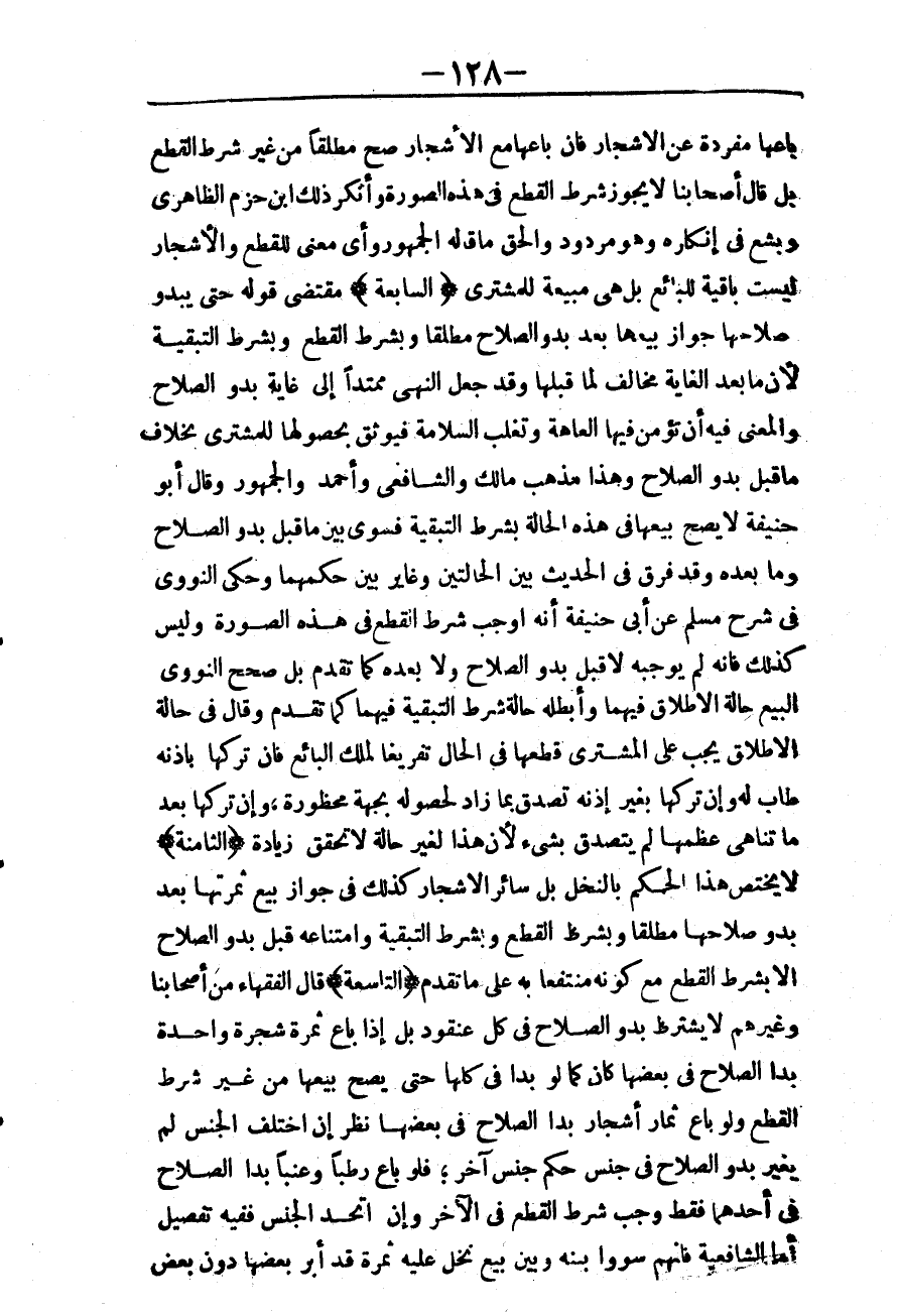 ـــــــــــــــــــــــــــــQبَاعَهَا مُفْرَدَةً عَنْ الْأَشْجَارِ فَإِنْ بَاعَهَا مَعَ الْأَشْجَارِ صَحَّ مُطْلَقًا مِنْ غَيْرِ شَرْطِ الْقَطْعِ بَلْ قَالَ أَصْحَابُنَا لَا يَجُوزُ شَرْطُ الْقَطْعِ فِي هَذِهِ الصُّورَةِ، وَأَنْكَرَ ذَلِكَ ابْنُ حَزْمٍ الظَّاهِرِيُّ وَبَشَّعَ فِي إنْكَارِهِ وَهُوَ مَرْدُودٌ وَالْحَقُّ مَا قَالَهُ الْجُمْهُورُ، وَأَيُّ مَعْنًى لِلْقَطْعِ وَالْأَشْجَارُ لَيْسَتْ بَاقِيَةً لِلْبَائِعِ بَلْ هِيَ مَبِيعَةٌ لِلْمُشْتَرِي. {السَّابِعَةُ} مُقْتَضَى قَوْلِهِ حَتَّى يَبْدُوَ صَلَاحُهَا جَوَازُ بَيْعِهَا بَعْدَ بُدُوِّ الصَّلَاحِ مُطْلَقًا وَبِشَرْطِ الْقَطْعِ وَبِشَرْطِ التَّبْقِيَةِ؛ لِأَنَّ مَا بَعْدَ الْغَايَةِ مُخَالِفٌ لِمَا قَبْلَهَا وَقَدْ جَعَلَ النَّهْيَ مُمْتَدًّا إلَى غَايَةِ بُدُوِّ الصَّلَاحِ وَالْمَعْنَى فِيهِ أَنْ تُؤْمَنَ فِيهَا الْعَاهَةُ وَتَغْلِبَ السَّلَامَةُ فَيُوثَقَ بِحُصُولِهَا لِلْمُشْتَرِي بِخِلَافِ مَا قَبْلَ بُدُوِّ الصَّلَاحِ وَهَذَا مَذْهَبُ مَالِكٍ وَالشَّافِعِيِّ وَأَحْمَدَ وَالْجُمْهُورِ وَقَالَ أَبُو حَنِيفَةَ لَا يَصِحُّ بَيْعُهَا فِي هَذِهِ الْحَالَةِ بِشَرْطِ التَّبْقِيَةِ فَسَوَّى بَيْنَ مَا قَبْلَ بُدُوِّ الصَّلَاحِ وَمَا بَعْدَهُ وَقَدْ فَرَّقَ فِي الْحَدِيثِ بَيْنَ الْحَالَتَيْنِ وَغَايَرَ بَيْنَ حُكْمِهِمَا وَحَكَى النَّوَوِيُّ فِي شَرْحِ مُسْلِمٍ عَنْ أَبِي حَنِيفَةَ أَنَّهُ أَوْجَبَ شَرْطَ الْقَطْعِ فِي هَذِهِ الصُّورَةِ وَلَيْسَ كَذَلِكَ فَإِنَّهُ لَمْ يُوجِبْهُ لَا قَبْلَ بُدُوِّ الصَّلَاحِ وَلَا بَعْدَهُ كَمَا تَقَدَّمَ بَلْ صَحَّحَ النَّوَوِيُّ الْبَيْعَ حَالَةَ الْإِطْلَاقِ فِيهِمَا، وَأَبْطَلَهُ حَالَةَ شَرْطِ التَّبْقِيَةِ فِيهِمَا كَمَا تَقَدَّمَ وَقَالَ فِي حَالَةِ الْإِطْلَاقِ يَجِبُ عَلَى الْمُشْتَرِي قَطْعُهَا فِي الْحَالِ تَفْرِيغًا لِمِلْكِ الْبَائِعِ فَإِنْ تَرَكَهَا بِإِذْنِهِ طَابَ لَهُ، وَإِنْ تَرَكَهَا بِغَيْرِ إذْنِهِ تَصَدَّقَ بِمَا زَادَ لِحُصُولِهِ بِجِهَةٍ مَحْظُورَةٍ، وَإِنْ تَرَكَهَا بَعْدَ مَا تَنَاهَى عِظَمُهَا لَمْ يَتَصَدَّقْ بِشَيْءٍ؛ لِأَنَّ هَذَا لِغَيْرِ حَالَةٍ لَا تُحَقِّقُ زِيَادَةً.