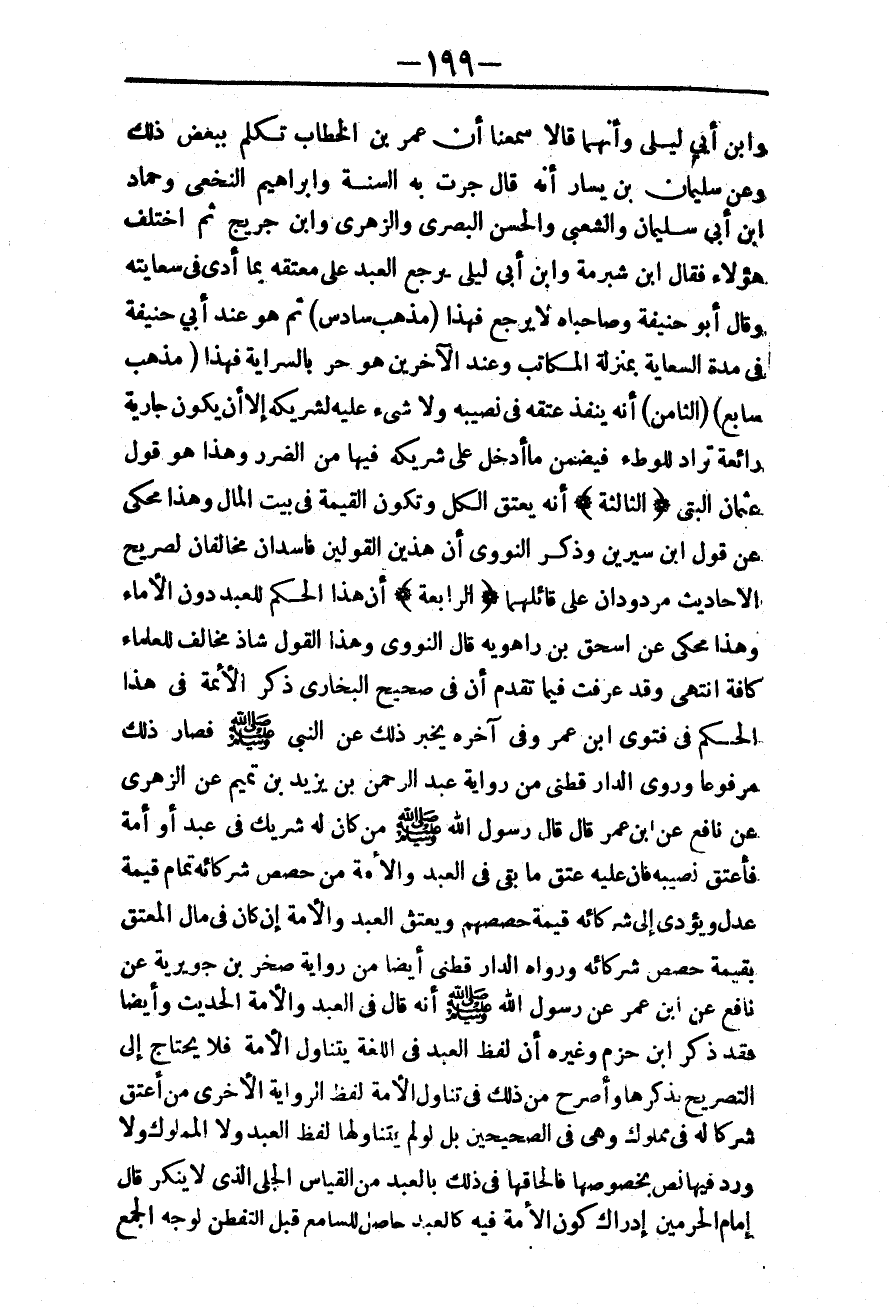 ـــــــــــــــــــــــــــــQوَابْنُ أَبِي لَيْلَى وَأَنَّهُمَا قَالَا سَمِعْنَا أَنَّ عُمَرَ بْنَ الْخَطَّابِ تَكَلَّمَ بِبَعْضِ ذَلِكَ وَعَنْ سُلَيْمَانَ بْنِ يَسَارٍ أَنَّهُ قَالَ جَرَتْ بِهِ السُّنَّةُ وَإِبْرَاهِيمُ النَّخَعِيّ وَحَمَّادُ بْنُ أَبِي سُلَيْمَانَ وَالشَّعْبِيُّ وَالْحَسَنُ الْبَصْرِيُّ وَالزُّهْرِيُّ وَابْنُ جُرَيْجٍ ثُمَّ اخْتَلَفَ هَؤُلَاءِ فَقَالَ ابْنُ شُبْرُمَةَ وَابْنُ أَبِي لَيْلَى يَرْجِعُ الْعَبْدُ عَلَى مُعْتِقِهِ بِمَا أَدَّى فِي سِعَايَتِهِ، وَقَالَ أَبُو حَنِيفَةَ وَصَاحِبَاهُ لَا يَرْجِعُ فَهَذَا (مَذْهَبٌ سَادِسٌ) . ثُمَّ هُوَ عِنْدَ أَبِي حَنِيفَةَ فِي مُدَّةِ السِّعَايَةِ بِمَنْزِلَةِ الْمُكَاتَبِ وَعِنْدَ الْآخَرِينَ هُوَ حُرٌّ بِالسِّرَايَةِ فَهَذَا (مَذْهَبٌ سَابِعٌ) .