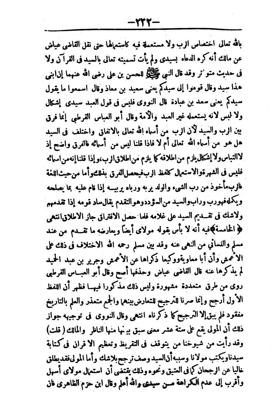 وَقَالَ النَّوَوِيُّ فِي تَوْجِيهِهِ جَوَازَ ذَلِكَ: أَنَّ الْمَوْلَى يَقَعُ عَلَى سِتَّةَ عَشَرَ مَعْنًى سَبَقَ بَيَانُهَا مِنْهَا النَّاظِرُ وَالْمَالِكُ (قُلْت) وَقَدْ رَأَيْت مِنْ شُيُوخِنَا مَنْ يَتَوَقَّفُ فِي التَّقْرِيظِ وَتَعْظِيمِ الْأَقْرَانِ فِي كِتَابَةِ سَيِّدِنَا وَيَكْتُبُ مَوْلَانَا وَسَبَبُهُ أَنَّ السَّيِّدَ وَصْفُ تَرَجُّحٍ بِلَا شَكٍّ، وَأَمَّا الْمَوْلَى فَقَدْ يُطْلَقُ خَالِيًا عَنْ الرُّجْحَانِ كَمَا فِي الْعَتِيقِ وَنَحْوِهِ، وَذَلِكَ يَقْتَضِي أَنَّ اسْتِعْمَالَ مَوْلَايَ أَسْهَلُ، وَأَقْرَبُ إلَى عَدَمِ الْكَرَاهَةِ مِنْ سَيِّدِي، وَاَللَّهُ أَعْلَمُ.