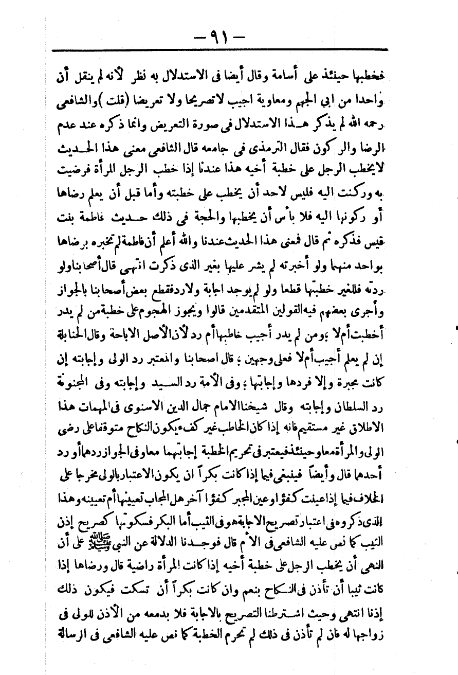 ـــــــــــــــــــــــــــــQفَخَطَبَهَا حِينَئِذٍ عَلَى أُسَامَةَ، وَقَالَ أَيْضًا: فِي الِاسْتِدْلَالِ بِهِ نَظَرٌ؛ لِأَنَّهُ لَمْ يُنْقَلْ أَنَّ وَاحِدًا مِنْ أَبِي الْجَهْمِ وَمُعَاوِيَةَ أُجِيبَ لَا تَصْرِيحًا وَلَا تَعْرِيضًا. (قُلْت) وَالشَّافِعِيُّ - رَحِمَهُ اللَّهُ - لَمْ يَذْكُرْ هَذَا الِاسْتِدْلَالَ فِي صُورَةِ التَّعْرِيضِ، وَإِنَّمَا ذَكَرَهُ عِنْدَ عَدَمِ الرِّضَا وَالرُّكُونِ فَقَالَ التِّرْمِذِيُّ فِي جَامِعِهِ قَالَ الشَّافِعِيُّ: مَعْنَى هَذَا الْحَدِيثِ لَا يَخْطُبُ الرَّجُلُ عَلَى خِطْبَةِ أَخِيهِ هَذَا عِنْدَنَا إذَا خَطَبَ الرَّجُلُ الْمَرْأَةَ فَرَضِيَتْ بِهِ وَرَكَنَتْ إلَيْهِ فَلَيْسَ لِأَحَدٍ أَنْ يَخْطُبَ عَلَى خِطْبَتِهِ. وَأَمَّا قَبْلَ أَنْ يَعْلَمَ رِضَاهَا أَوْ رُكُونَهَا إلَيْهِ فَلَا بَأْسَ أَنْ يَخْطُبَهَا وَالْحُجَّةُ فِي ذَلِكَ حَدِيثُ فَاطِمَةَ بِنْتِ قَيْسٍ فَذَكَرَهُ ثُمَّ قَالَ فَمَعْنَى هَذَا الْحَدِيثِ عِنْدَنَا - وَاَللَّهُ أَعْلَمُ - أَنَّ فَاطِمَةَ لَمْ تُخْبِرْهُ بِرِضَاهَا بِوَاحِدٍ مِنْهُمَا، وَلَوْ أَخْبَرَتْهُ لَمْ يُشِرْ عَلَيْهَا بِغَيْرِ الَّذِي ذَكَرَتْ. انْتَهَى.