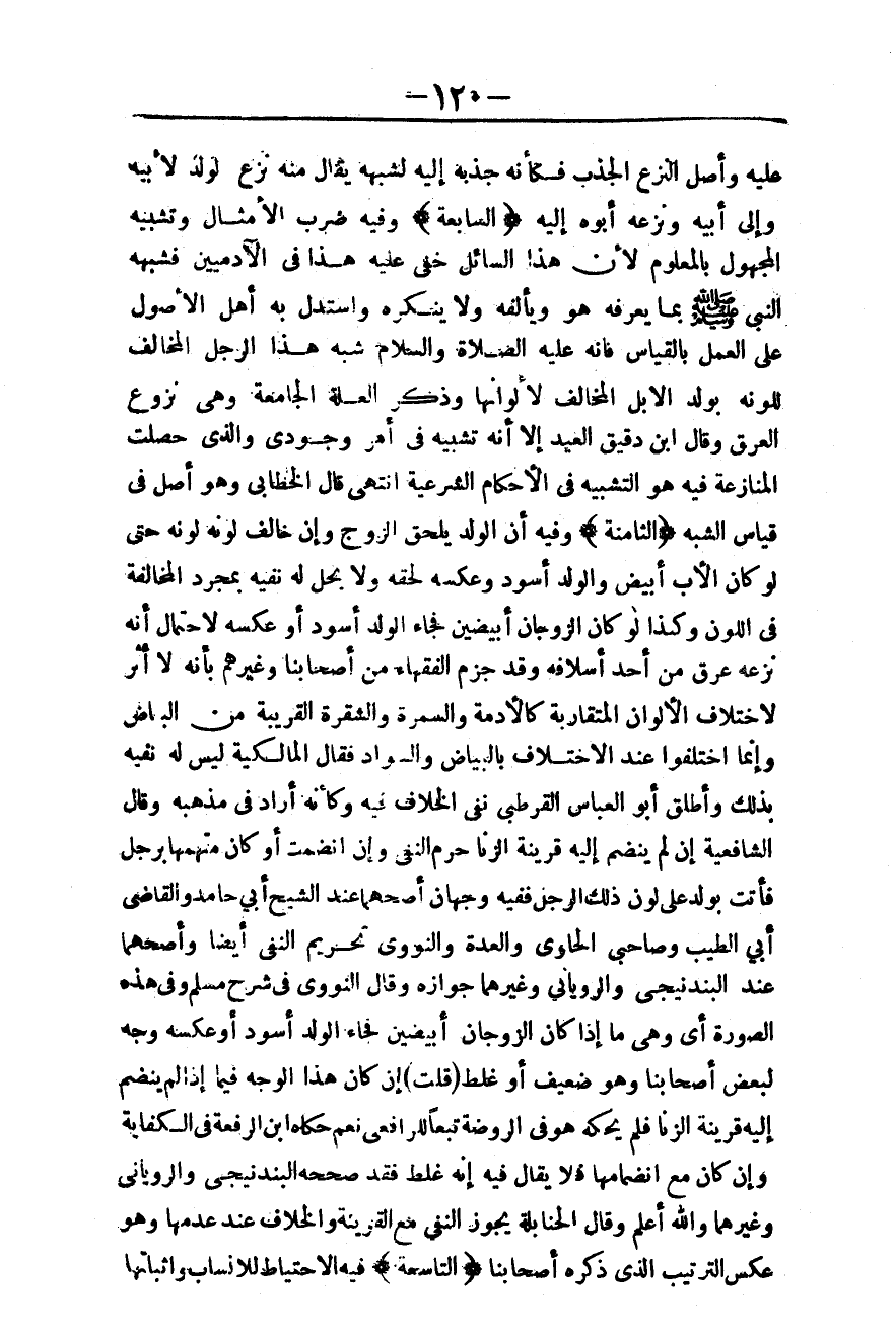 (التَّاسِعَةُ) فِيهِ الِاحْتِيَاطُ لِلْأَنْسَابِ، وَإِثْبَاتُهَا