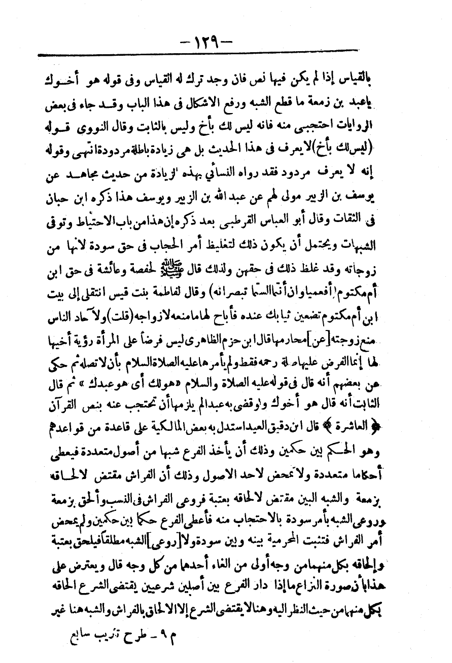 ـــــــــــــــــــــــــــــQبِالْقِيَاسِ إذَا لَمْ يَكُنْ فِيهَا نَصٌّ فَإِنْ وُجِدَ تُرِكَ لَهُ الْقِيَاسُ، وَفِي قَوْلِهِ هُوَ أَخُوك يَا عَبْدُ بْنُ زَمْعَةَ مَا قَطَعَ الشَّبَهَ، وَرَفَعَ الْإِشْكَالَ فِي هَذَا الْبَابِ، وَقَدْ جَاءَ فِي بَعْضِ الرِّوَايَاتِ احْتَجِبِي مِنْهُ فَإِنَّهُ لَيْسَ لَك بِأَخٍ، وَلَيْسَ بِالثَّابِتِ، وَقَالَ النَّوَوِيُّ قَوْلُهُ (لَيْسَ لَك بِأَخٍ) لَا يُعْرَفُ فِي هَذَا الْحَدِيثِ بَلْ هِيَ زِيَادَةٌ بَاطِلَةٌ مَرْدُودَةٌ انْتَهَى.