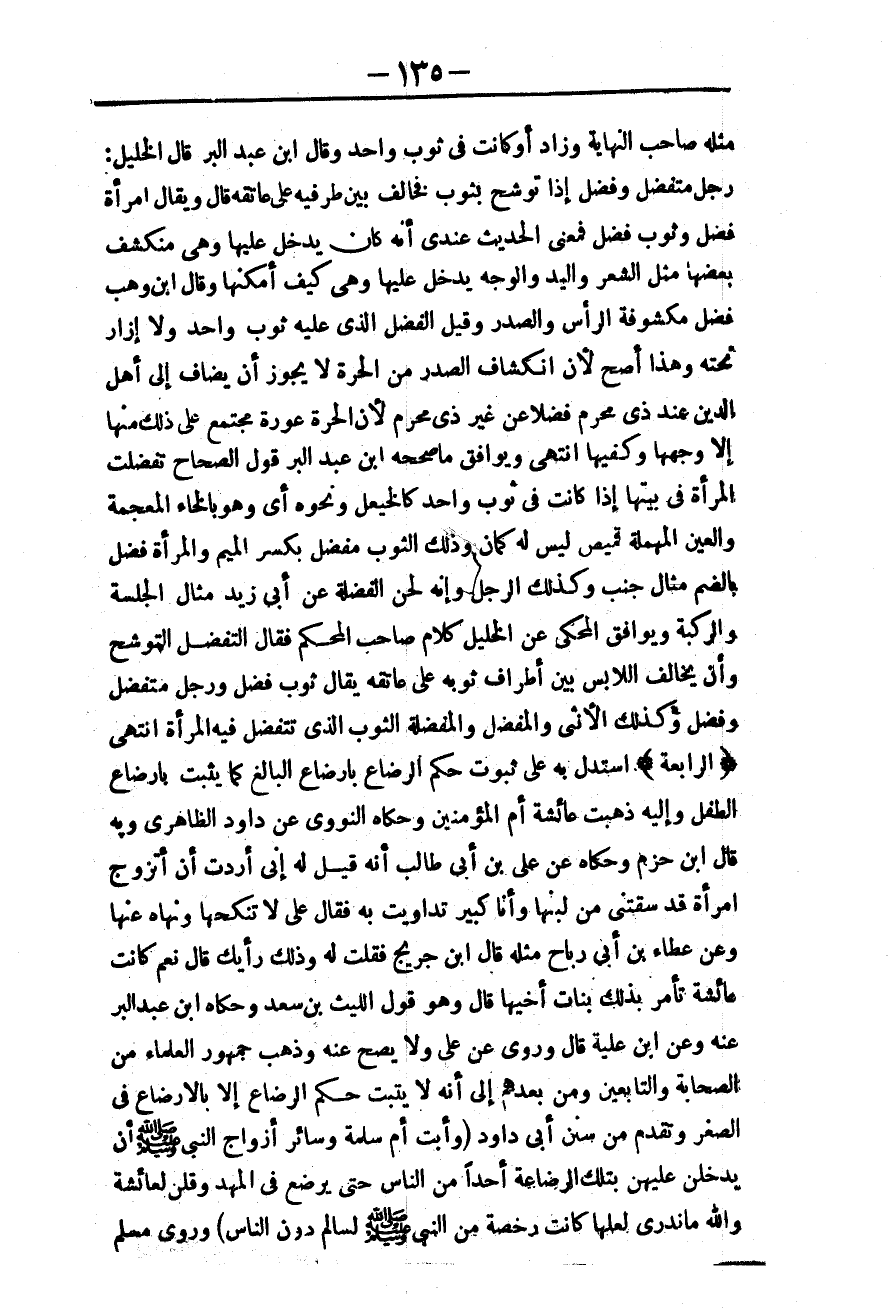 وَيُوَافِقُ مَا صَحَّحَهُ ابْنُ عَبْدِ الْبَرِّ قَوْلُ الصَّحَاحِ تَفَضَّلَتْ الْمَرْأَةُ فِي بَيْتِهَا إذَا كَانَتْ فِي ثَوْبٍ وَاحِدٍ كَالْخَيْعَلِ، وَنَحْوِهِ أَيْ، وَهُوَ بِالْخَاءِ الْمُعْجَمَةِ، وَالْعَيْنِ الْمُهْمَلَةِ قَمِيصٌ لَيْسَ لَهُ كُمَّانِ، وَذَلِكَ الثَّوْبُ مِفْضَلٌ بِكَسْرِ الْمِيمِ، وَالْمَرْأَةُ فُضُلٌ بِالضَّمِّ مِثَالَ جُنُبٍ، وَكَذَلِكَ الرَّجُلُ، وَإِنَّهُ لَحَسَنُ الْفَضْلَةِ عَنْ أَبِي زَيْدٍ مِثَالَ الْجِلْسَةِ وَالرِّكْبَةِ، وَيُوَافِقُ الْمَحْكِيَّ عَنْ الْخَلِيلِ كَلَامُ صَاحِبِ الْمُحْكَمِ فَقَالَ التَّفَضُّلُ التَّوَشُّحُ، وَأَنْ يُخَالِفَ اللَّابِسَ بَيْنَ أَطْرَافِ ثَوْبِهِ عَلَى عَاتِقِهِ يُقَالُ ثَوْبٌ فُضُلٌ، وَرَجُلٌ مُتَفَضِّلٌ، وَفُضُلٌ، وَكَذَلِكَ الْأُنْثَى، وَالْمُفْضَلُ، وَالْمُفْضَلَةُ الثَّوْبُ الَّذِي تَتَفَضَّلُ فِيهِ الْمَرْأَةُ انْتَهَى.