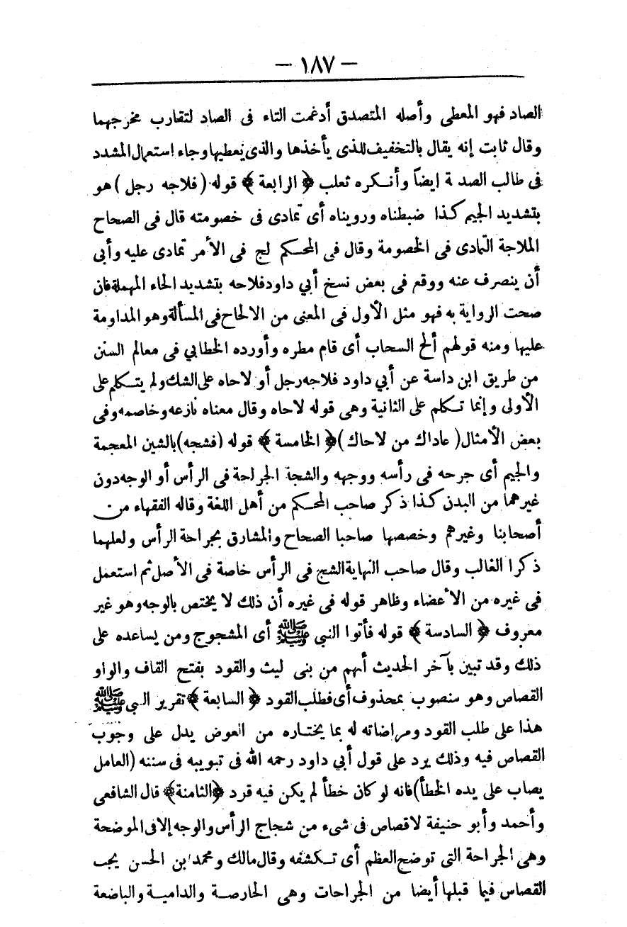 [فَائِدَة لَا قِصَاصَ فِي شَيْءٍ مِنْ شِجَاجِ الرَّأْسِ وَالْوَجْهِ] 1