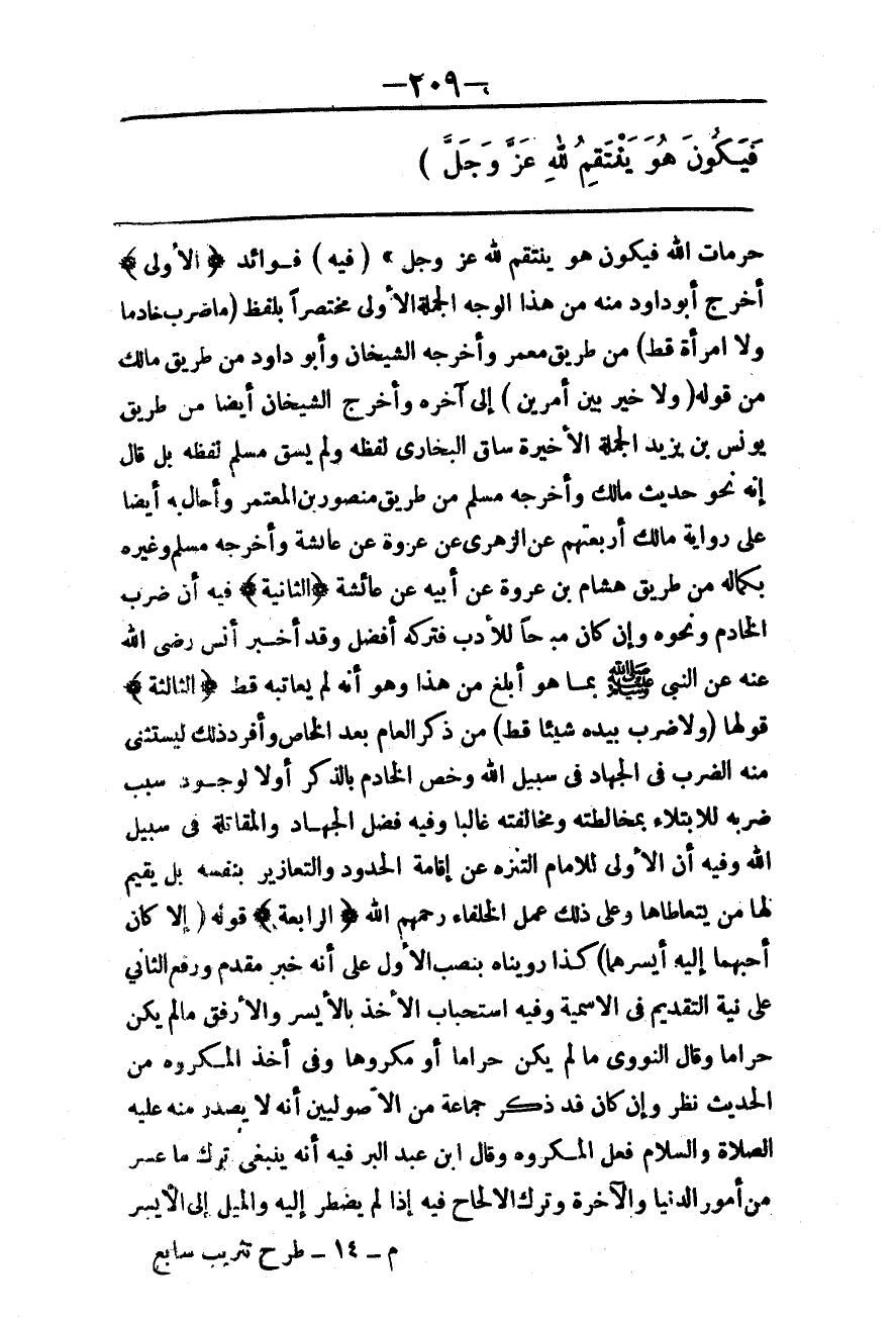 ـــــــــــــــــــــــــــــQحُرُمَاتُ اللَّهِ فَيَكُونَ هُوَ يَنْتَقِمُ لِلَّهِ عَزَّ وَجَلَّ» .