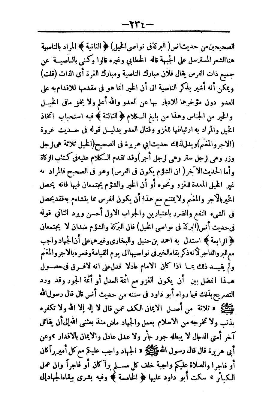 ـــــــــــــــــــــــــــــQالصَّحِيحَيْنِ مِنْ حَدِيثِ أَنَسٍ «الْبَرَكَةُ فِي نَوَاصِي الْخَيْلِ» .