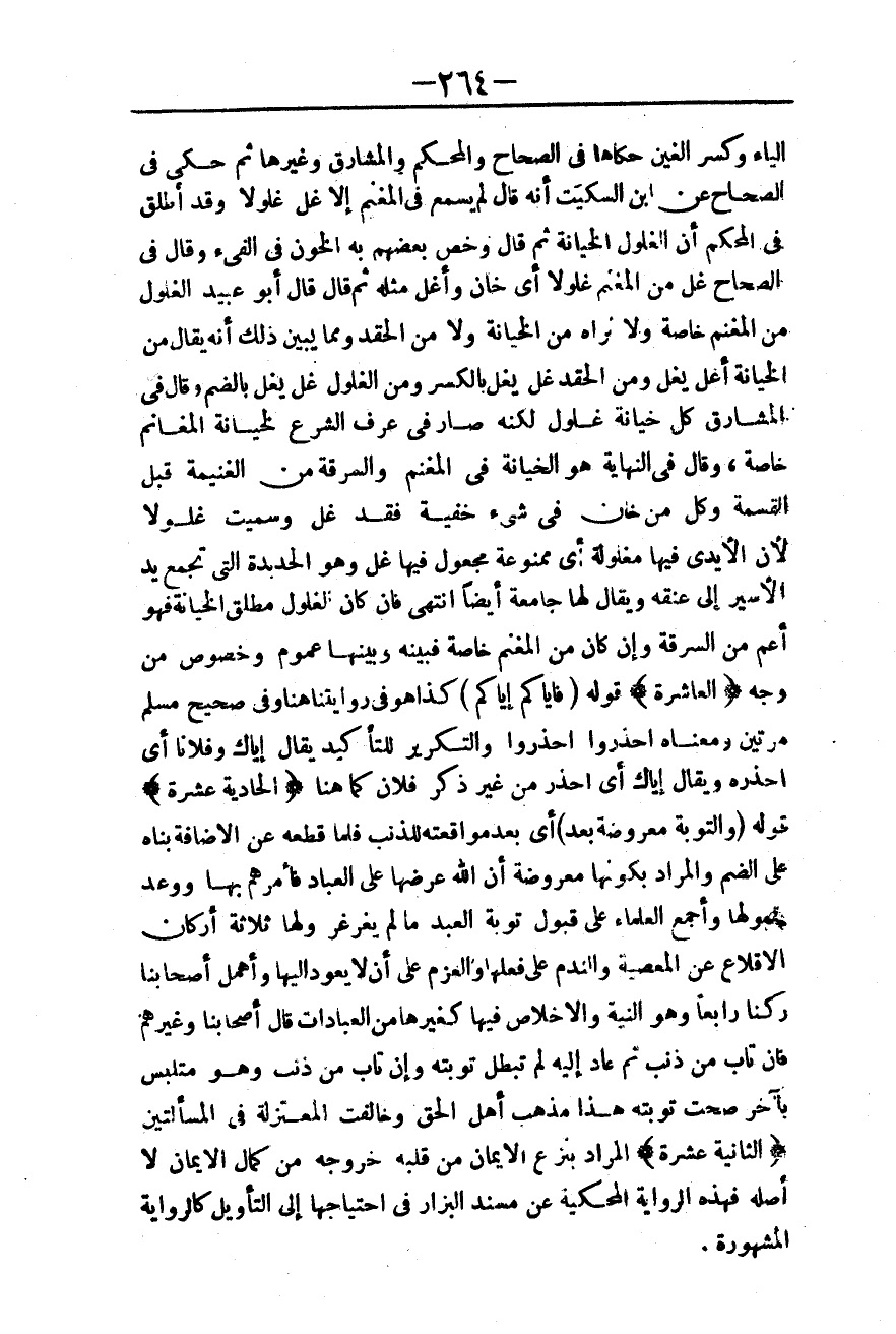 ـــــــــــــــــــــــــــــQالْيَاءِ وَكَسْرِ الْغَيْنِ حَكَاهَا فِي الصِّحَاحِ، وَالْمُحْكَمِ، وَالْمَشَارِقِ، وَغَيْرِهَا ثُمَّ حَكَى فِي الصِّحَاحِ عَنْ ابْنِ السِّكِّيتِ أَنَّهُ قَالَ لَمْ يَسْمَعْ فِي الْمَغْنَمِ إلَّا غَلَّ غُلُولًا، وَقَدْ أَطْلَقَ فِي الْمُحْكَمِ أَنَّ الْغُلُولَ الْخِيَانَةُ ثُمَّ قَالَ: وَخَصَّ بَعْضُهُمْ بِهِ الْخَوْنَ فِي الْفَيْءِ، وَقَالَ فِي الصِّحَاحِ غَلَّ مِنْ الْمَغْنَمِ غُلُولًا أَيْ خَانَ، وَأَغَلَّ مِثْلَهُ ثُمَّ قَالَ قَالَ أَبُو عُبَيْدٍ الْغُلُولُ مِنْ الْمَغْنَمِ خَاصَّةً، وَلَا نَرَاهُ مِنْ الْخِيَانَةِ، وَلَا مِنْ الْحِقْدِ، وَمِمَّا يُبَيِّنُ ذَلِكَ أَنَّهُ يُقَالُ مِنْ الْخِيَانَةِ أَغَلَّ يَغُلُّ، وَمِنْ الْحِقْدِ غَلَّ يَغِلُّ بِالْكَسْرِ، وَمِنْ الْغُلُولُ غَلَّ يَغُلُّ بِالضَّمِّ، وَقَالَ فِي الْمَشَارِقِ كُلُّ خِيَانَةٍ غُلُولٌ لَكِنَّهُ صَارَ فِي عُرِفَ الشَّرْعِ لِخِيَانَةِ الْمَغَانِمِ خَاصَّةً، وَقَالَ فِي النِّهَايَةِ هُوَ الْخِيَانَةُ فِي الْمَغْنَمِ وَالسَّرِقَةُ مِنْ الْغَنِيمَةِ قَبْلَ الْقِسْمَةِ، وَكُلُّ مَنْ خَانَ فِي شَيْءٍ خُفْيَةً فَقَدْ غَلَّ، وَسُمِّيَتْ غُلُولًا لِأَنَّ الْأَيْدِي فِيهَا مَغْلُولَةٌ أَيْ مَمْنُوعَةٌ مَجْعُولٌ فِيهَا غَلَّ، وَهُوَ الْحَدِيدَةُ الَّتِي تَجْمَعُ يَدَ الْأَسِيرِ إلَى عُنُقِهِ، وَيُقَالُ لَهَا جَامِعَةٌ أَيْضًا انْتَهَى فَإِنْ كَانَ الْغُلُولُ مُطْلَقُ الْخِيَانَةِ فَهُوَ أَعَمُّ مِنْ السَّرِقَةِ، وَإِنْ كَانَ مِنْ الْمَغْنَمِ خَاصَّةٌ فَبَيْنَهُ، وَبَيْنَهَا عُمُومٌ، وَخُصُوصٌ مِنْ، وَجْهٍ.