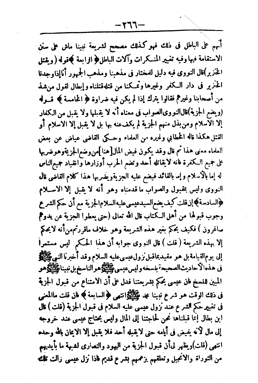 (قُلْت) وَيَظْهَرُ لِي أَنَّ قَبُولَ الْجِزْيَةِ مِنْ الْيَهُودِ وَالنَّصَارَى لِشُبْهَةِ مَا بِأَيْدِيهِمْ مِنْ التَّوْرَاةِ وَالْإِنْجِيلِ وَتَعَلُّقِهِمْ بِزَعْمِهِمْ بِشَرْعٍ قَدِيمٍ فَإِذَا نَزَلَ عِيسَى زَالَتْ تِلْكَ