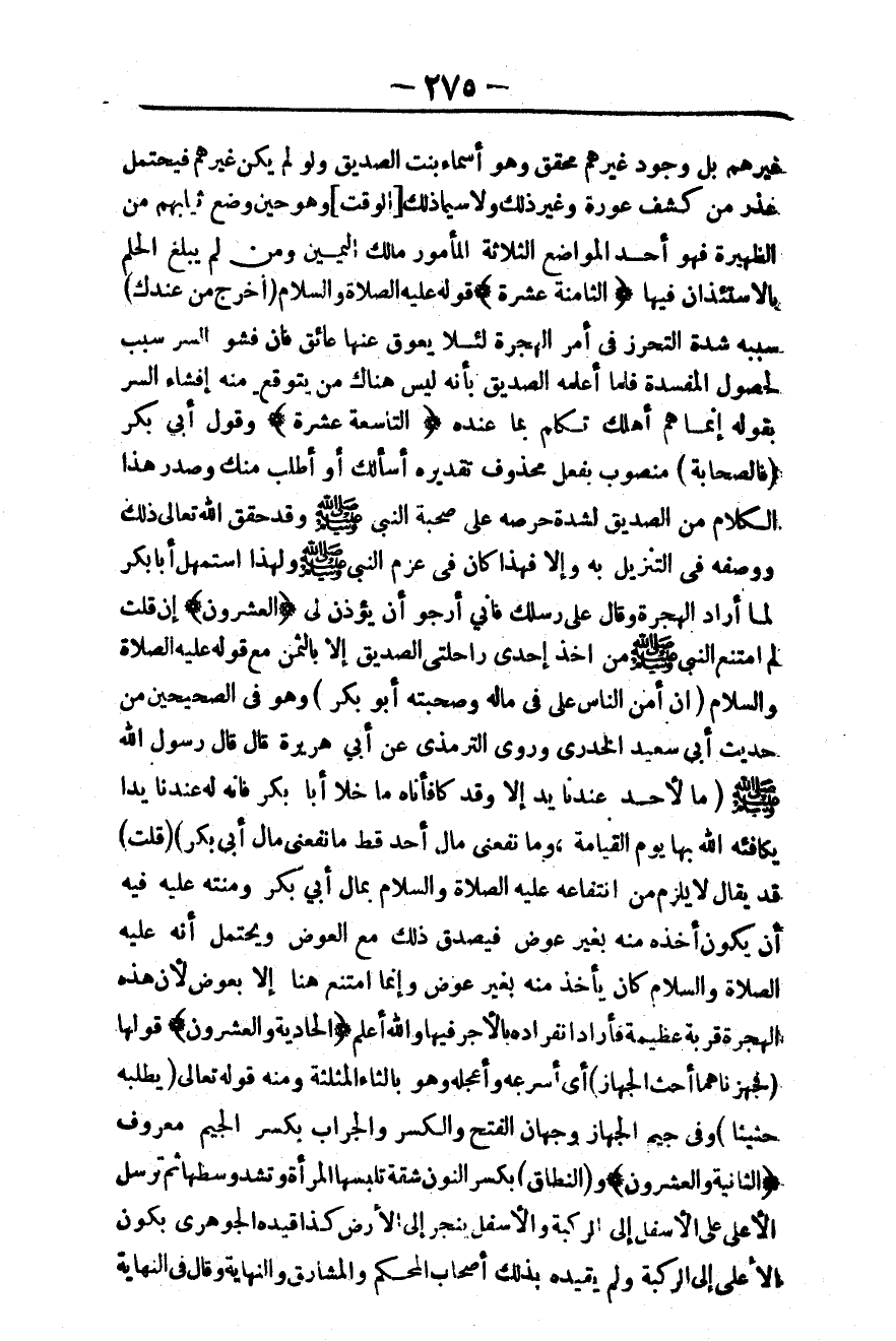 {التَّاسِعَةَ عَشْرَةَ} ، وَقَوْلُ أَبِي بَكْرٍ (فَالصَّحَابَةَ) مَنْصُوبٌ بِفِعْلٍ مَحْذُوفٍ تَقْدِيرُهُ أَسْأَلُك أَوْ أَطْلُبُ مِنْك، وَصَدْرُ هَذَا الْكَلَامِ مِنْ الصِّدِّيقِ لِشِدَّةِ حِرْصِهِ عَلَى صُحْبَةِ النَّبِيِّ - صَلَّى اللَّهُ عَلَيْهِ وَسَلَّمَ -، وَقَدْ حَقَّقَ اللَّهُ تَعَالَى ذَلِكَ، وَوَصَفَهُ فِي التَّنْزِيلِ بِهِ، وَإِلَّا فَهَذَا كَانَ فِي عَزْمِ النَّبِيِّ - صَلَّى اللَّهُ عَلَيْهِ وَسَلَّمَ -، وَلِهَذَا «اسْتَمْهَلَ أَبَا بَكْرٍ لَمَّا أَرَادَ الْهِجْرَةَ، وَقَالَ عَلَى رِسْلِك فَإِنِّي أَرْجُو أَنْ يُؤْذَنَ لِي» .