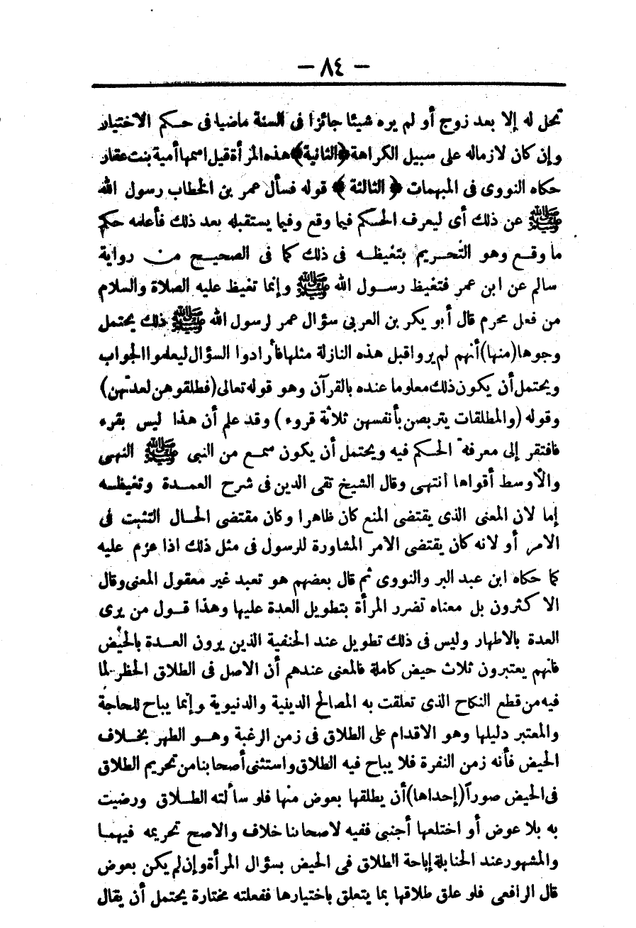 وَقَالَ الْأَكْثَرُونَ بَلْ مَعْنَاهُ تَضَرُّرُ الْمَرْأَةِ بِتَطْوِيلِ الْعِدَّةِ عَلَيْهَا، وَهَذَا قَوْلُ مَنْ يَرَى الْعِدَّةَ بِالْأَطْهَارِ، وَلَيْسَ فِي ذَلِكَ تَطْوِيلٌ عِنْدَ الْحَنَفِيَّةِ الَّذِينَ يَرَوْنَ الْعِدَّةَ بِالْحَيْضِ فَإِنَّهُمْ يَعْتَبِرُونَ ثَلَاثَ حِيَضٍ كَامِلَةٍ فَالْمَعْنَى عِنْدَهُمْ أَنَّ الْأَصْلَ فِي الطَّلَاقِ الْحَظْرُ لِمَا فِيهِ مِنْ قَطْعِ النِّكَاحِ الَّذِي تَعَلَّقَتْ بِهِ الْمَصَالِحُ الدِّينِيَّةُ وَالدُّنْيَوِيَّةُ، وَإِنَّمَا يُبَاحُ لِلْحَاجَةِ، وَالْمُعْتَبَرُ دَلِيلُهَا، وَهُوَ الْإِقْدَامُ عَلَى الطَّلَاقِ فِي زَمَنِ الرَّغْبَةِ، وَهُوَ الطُّهْرُ بِخِلَافِ الْحَيْضِ فَإِنَّهُ زَمَنُ النَّفْرَةِ فَلَا يُبَاحُ فِيهِ الطَّلَاقُ، وَاسْتَثْنَى أَصْحَابُنَا مِنْ تَحْرِيمِ الطَّلَاقِ فِي الْحَيْضِ صُوَرًا (إحْدَاهَا) أَنْ يُطَلِّقَهَا بِعِوَضٍ مِنْهَا فَلَوْ سَأَلَتْهُ الطَّلَاقَ، وَرَضِيَتْ بِهِ بِلَا عِوَضٍ أَوْ اخْتَلَعَهَا أَجْنَبِيٌّ فَفِيهِ لِأَصْحَابِنَا خِلَافٌ، وَالْأَصَحُّ تَحْرِيمُهُ فِيهِمَا، وَالْمَشْهُورُ عِنْدَ الْحَنَابِلَةِ إبَاحَةُ الطَّلَاقِ فِي الْحَيْضِ بِسُؤَالِ الْمَرْأَةِ، وَإِنْ لَمْ يَكُنْ بِعِوَضٍ قَالَ الرَّافِعِيُّ فَلَوْ عُلِّقَ طَلَاقُهَا بِمَا يَتَعَلَّقُ بِاخْتِيَارِهَا فَفَعَلَتْهُ مُخْتَارَةً يَحْتَمِلُ أَنْ يُقَالَ